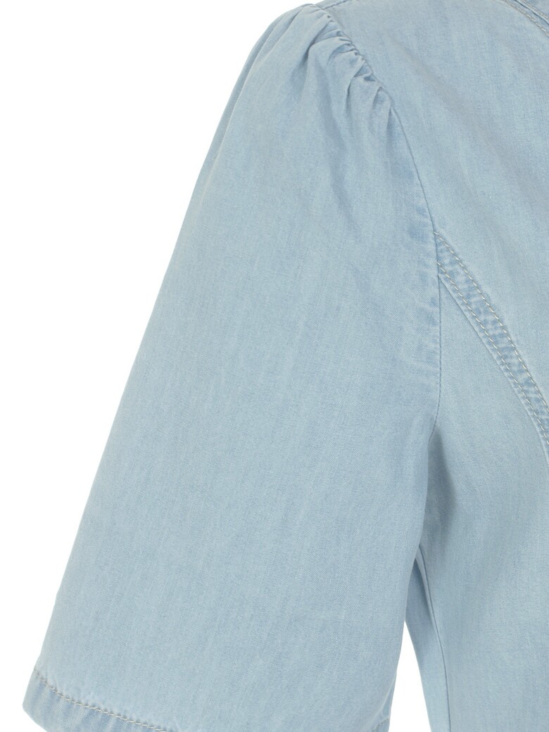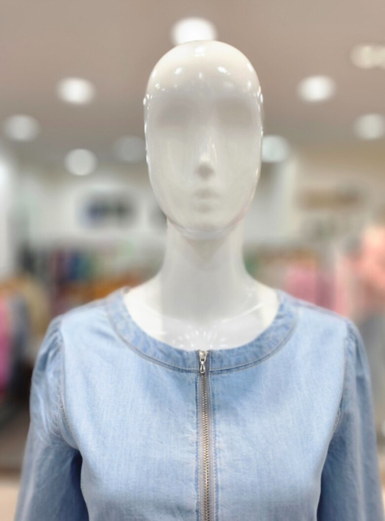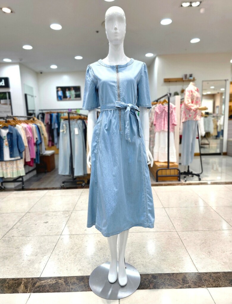 [발렌시아]집업 벨티드 데님 반팔 롱 원피스 246GO91