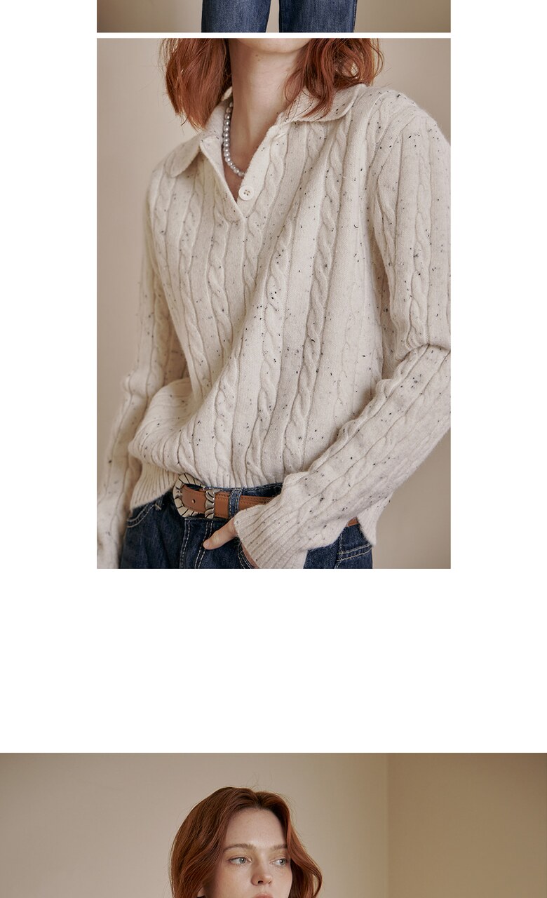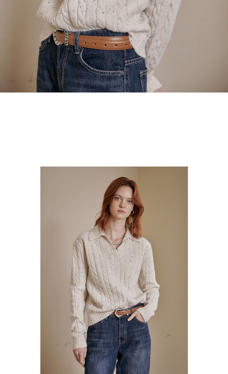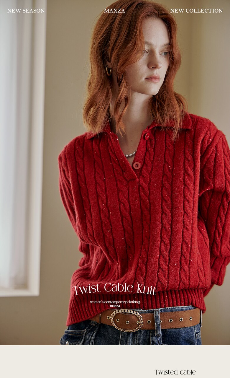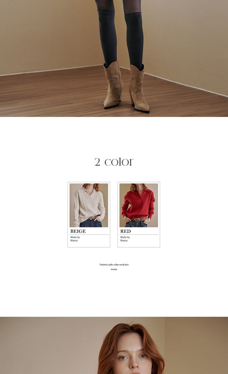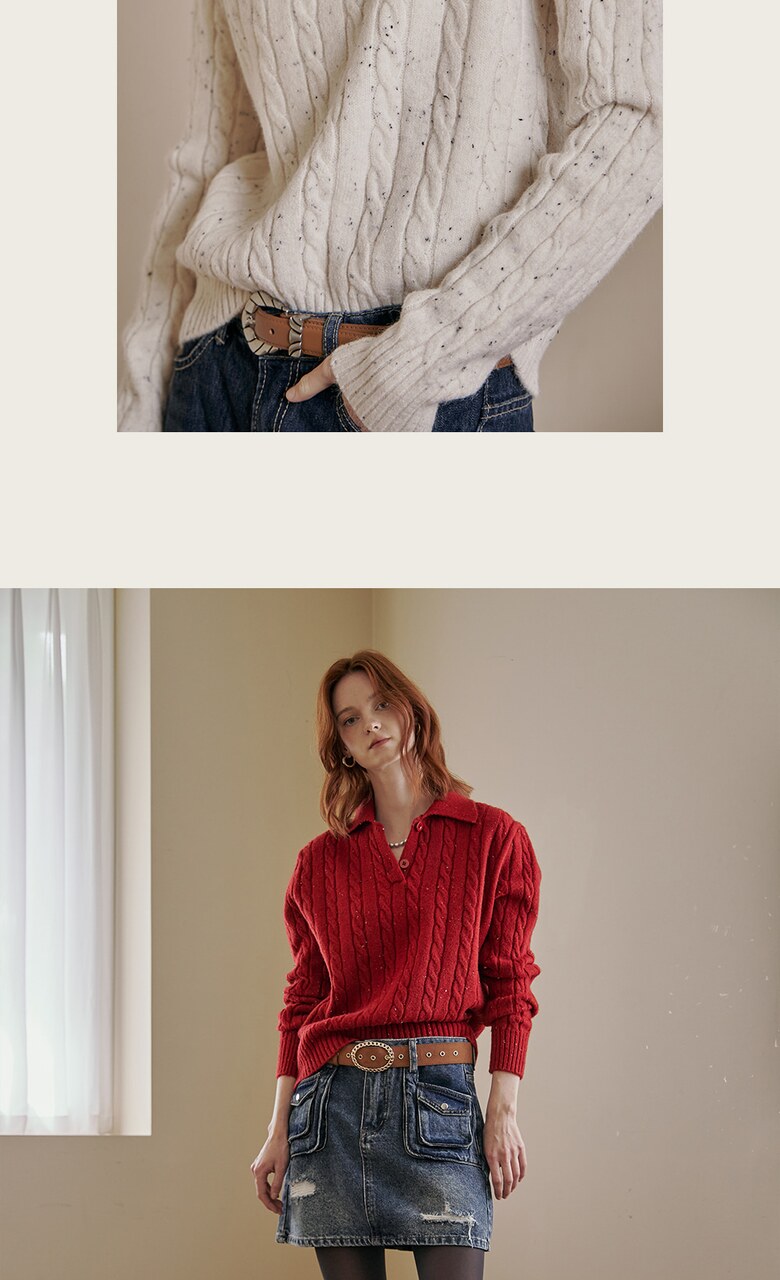 포근한 무드가 느껴지는 카라넥 케이블 니트입니다.