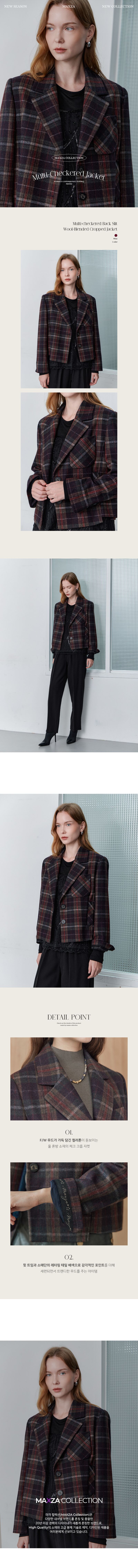 멀티 체크 뒷트임 울혼방 크롭 자켓(와인)