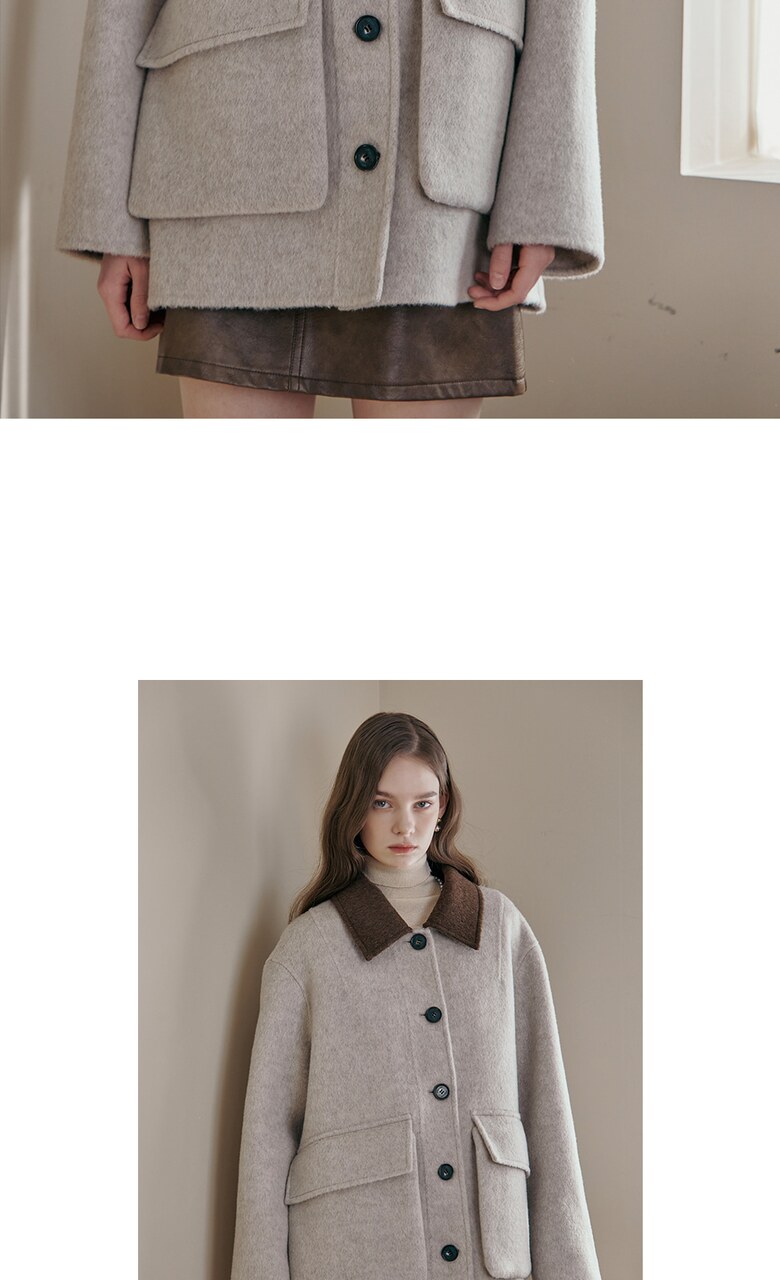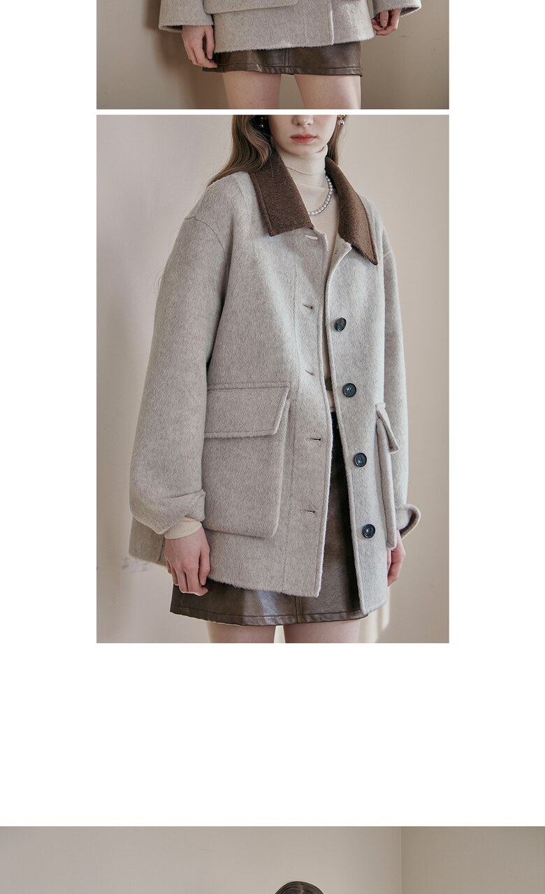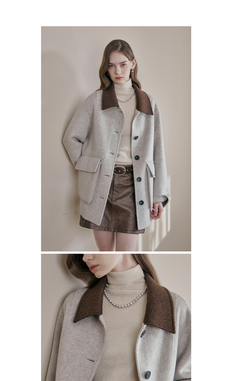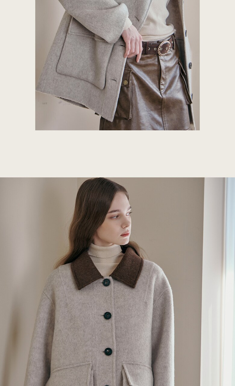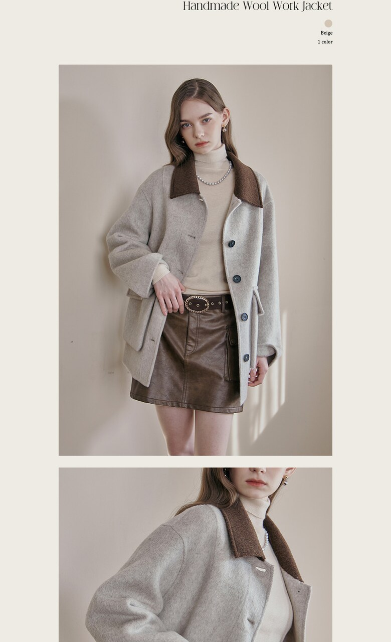 배색 스탠카라 핸드메이드 울 워크 자켓