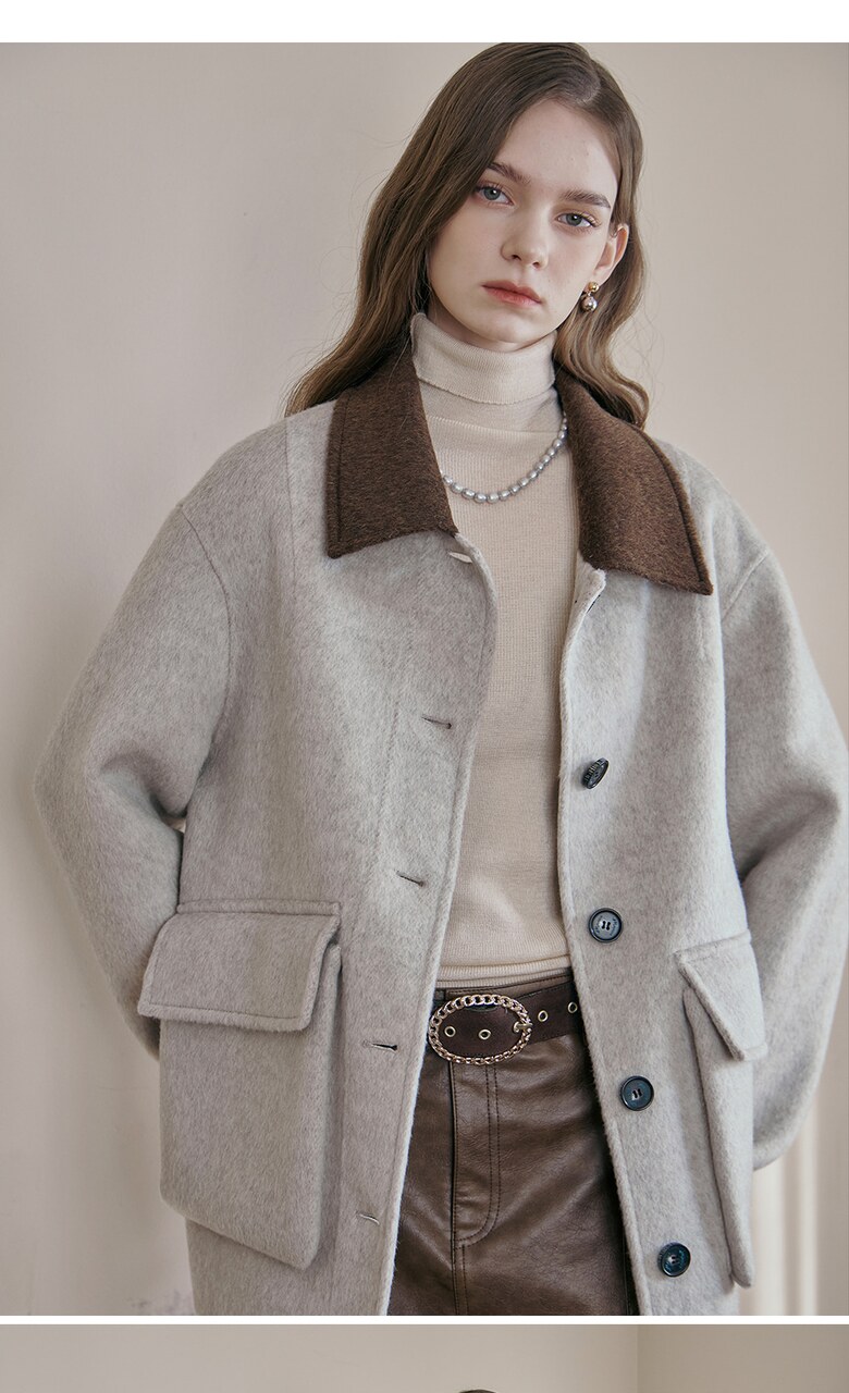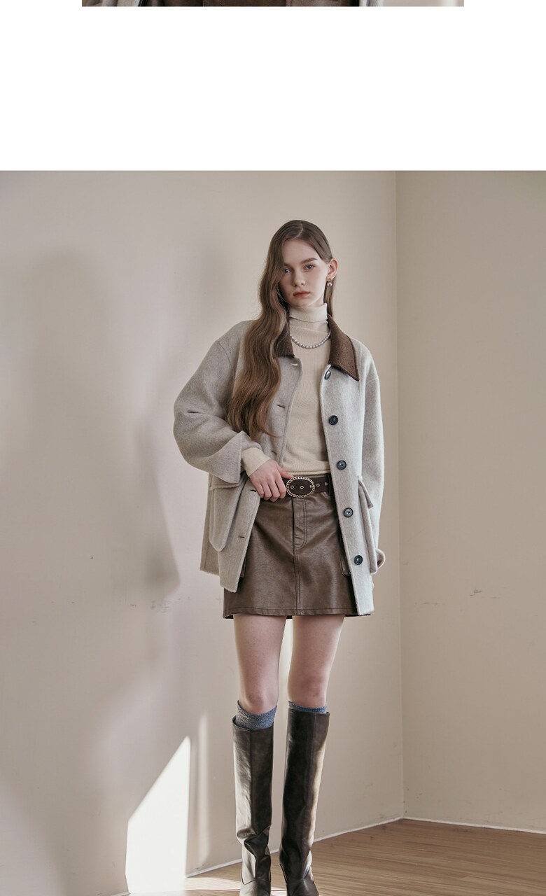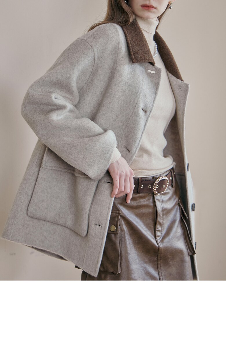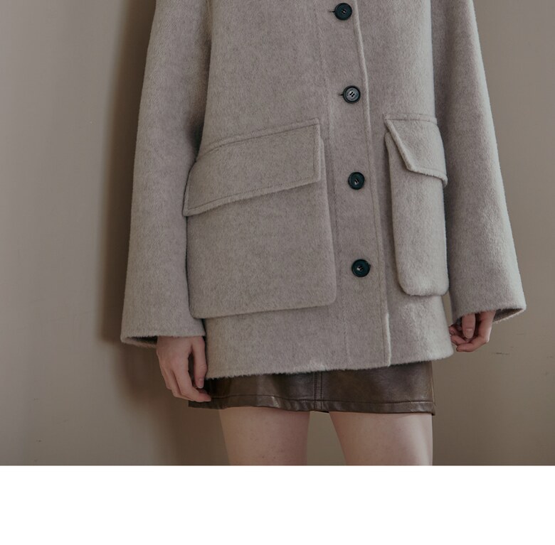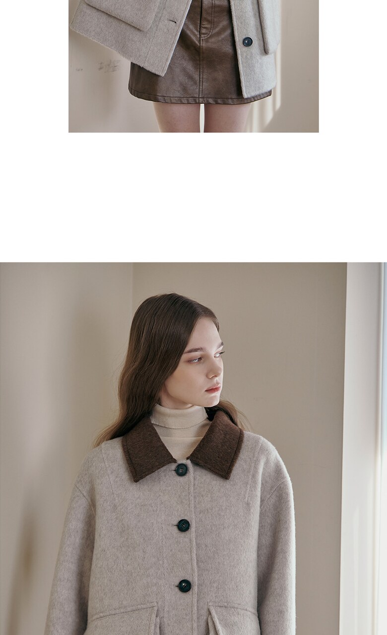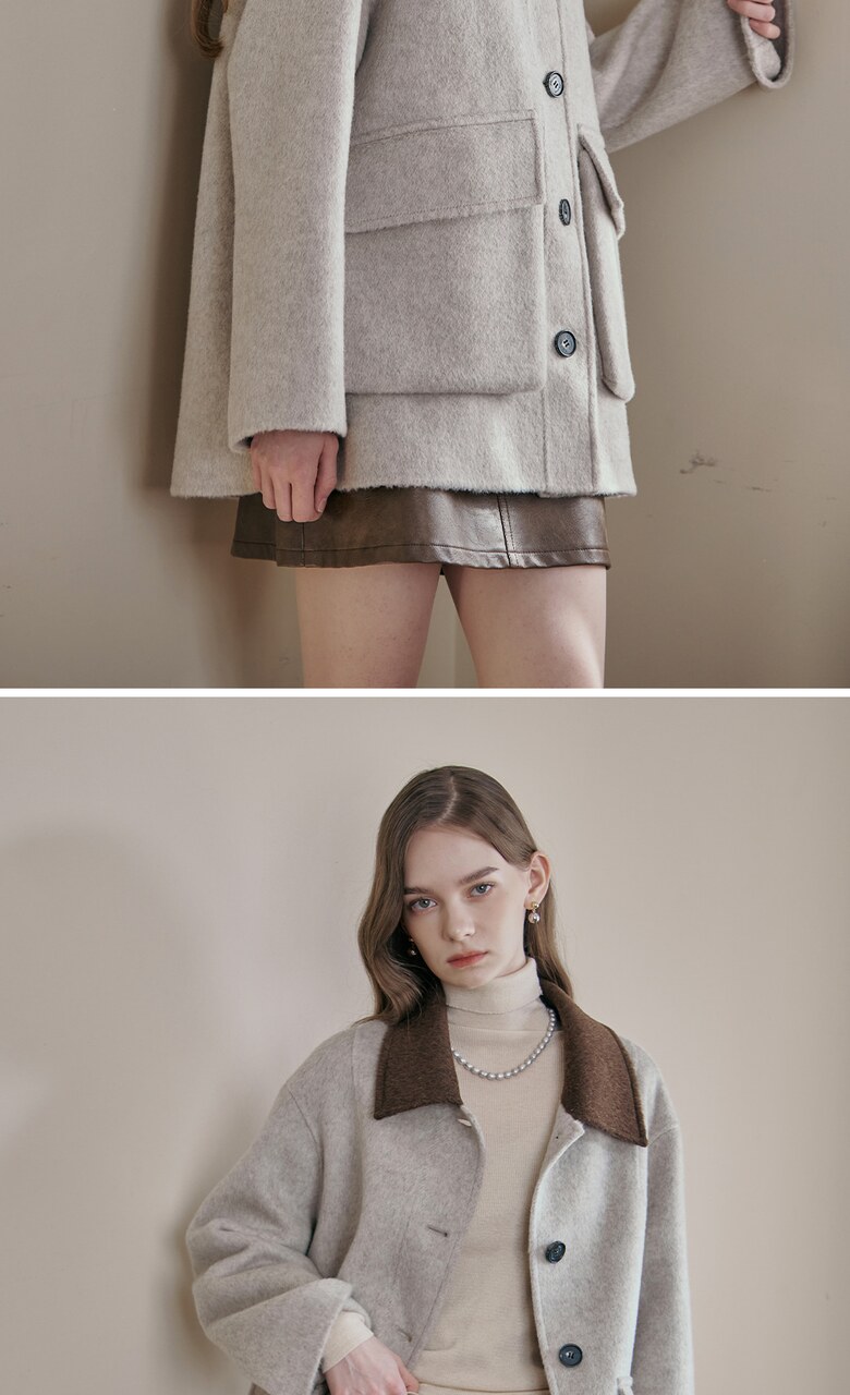 배색 스탠카라 핸드메이드 울 워크 자켓
