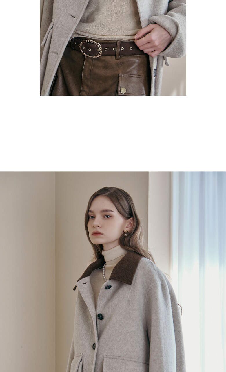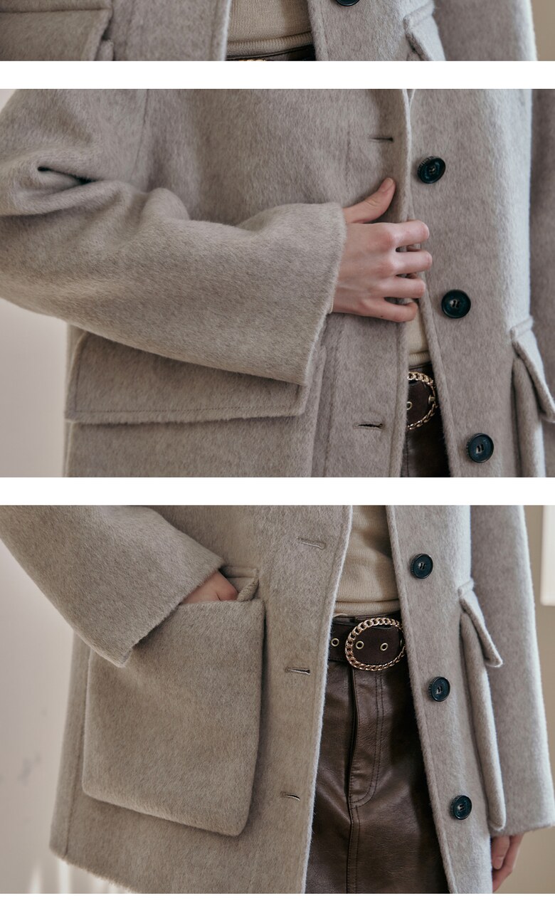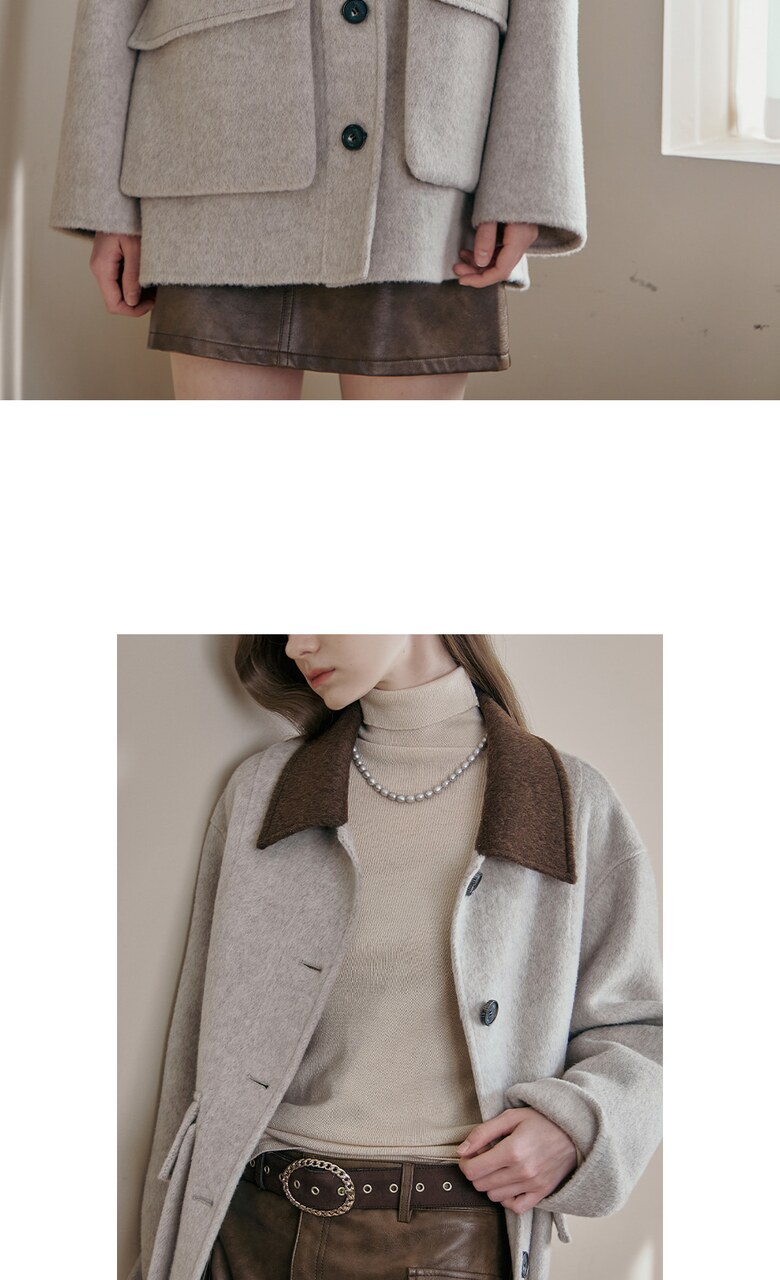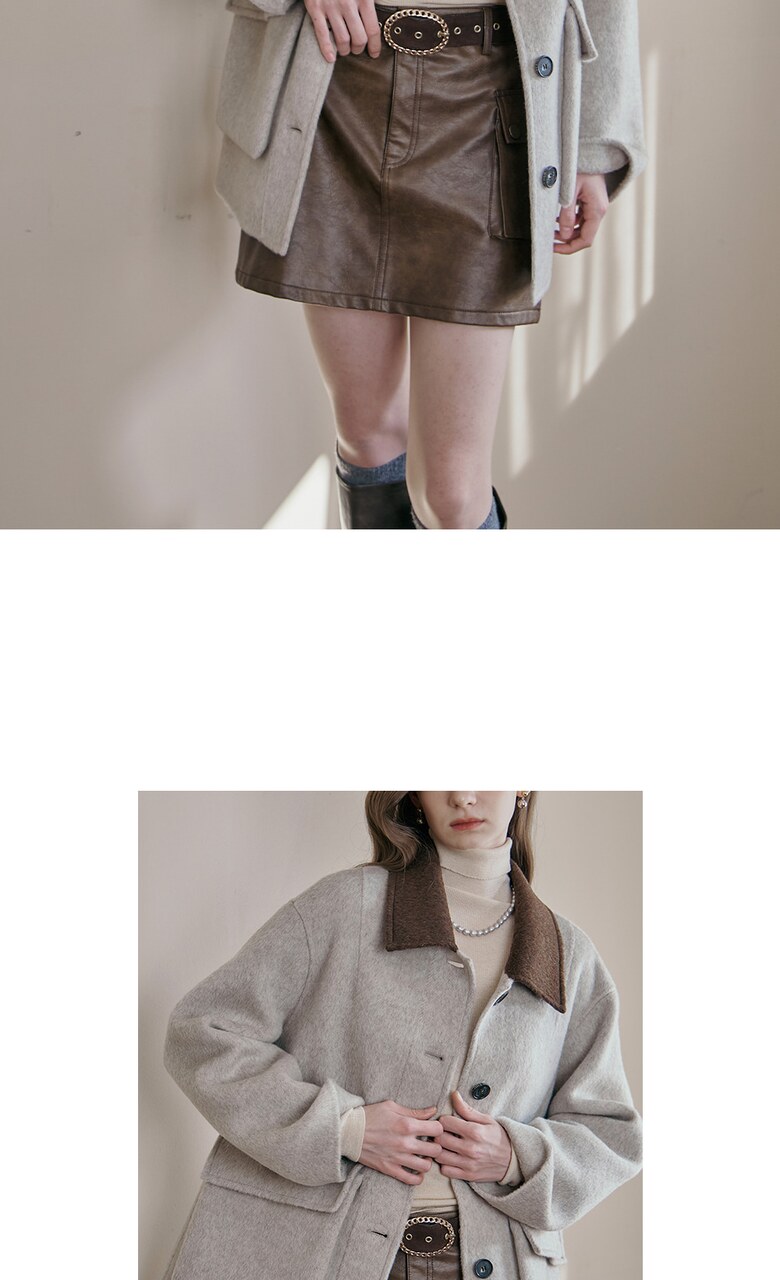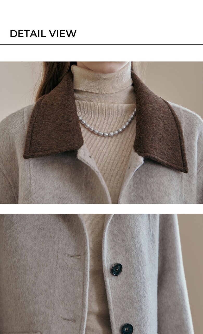 배색 스탠카라 핸드메이드 울 워크 자켓