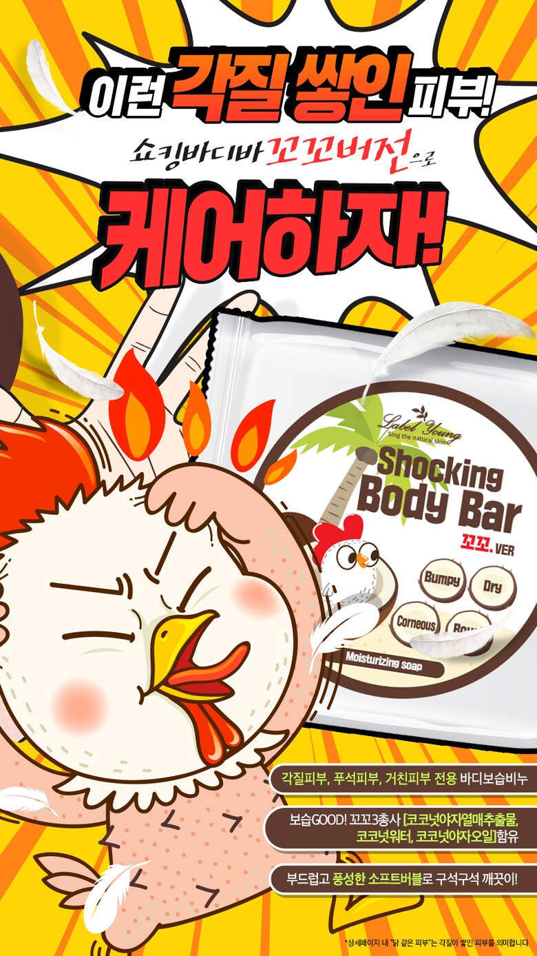 라벨영 쇼킹바디바 꼬꼬버전 100g 문제성바디 쫀쫀 건조 각질 피부결점 클렌저 바디비누