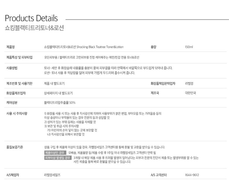 라벨영 블랙티트리 토너 150ml 문제성 피부진정+유수분밸런스케어/기초스킨 순한에센스