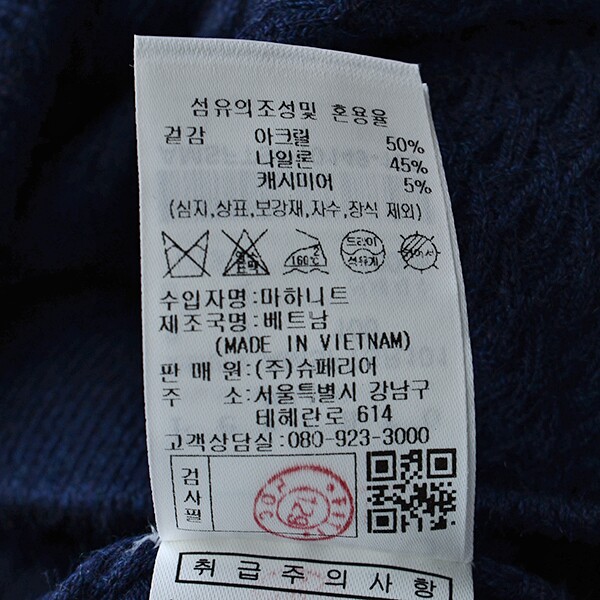 제품소재 : 아크릴50%나일론45%캐시미어5%