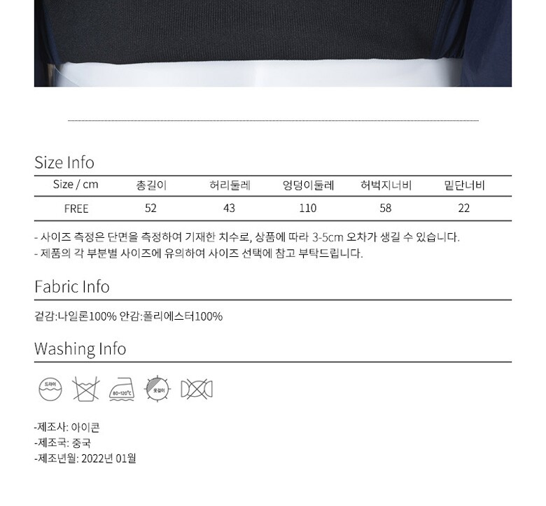 1. 제품 소재 (섬유의 조성 또는 혼용률을 백분율로 표시, 기능성인 경우 성적서 또는 허가서) | 상세페이지 참조 |