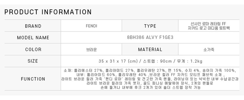 | 5. 제조사 | 펜디/(주)언커먼레이블-병행수입 |