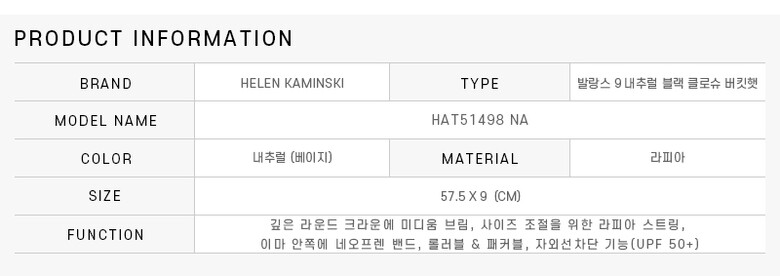 헬렌카민스키 모자 HAT51498 NA 발랑스 9 내츄럴 블랙 클로슈 버킷햇 여성모자 당일발송