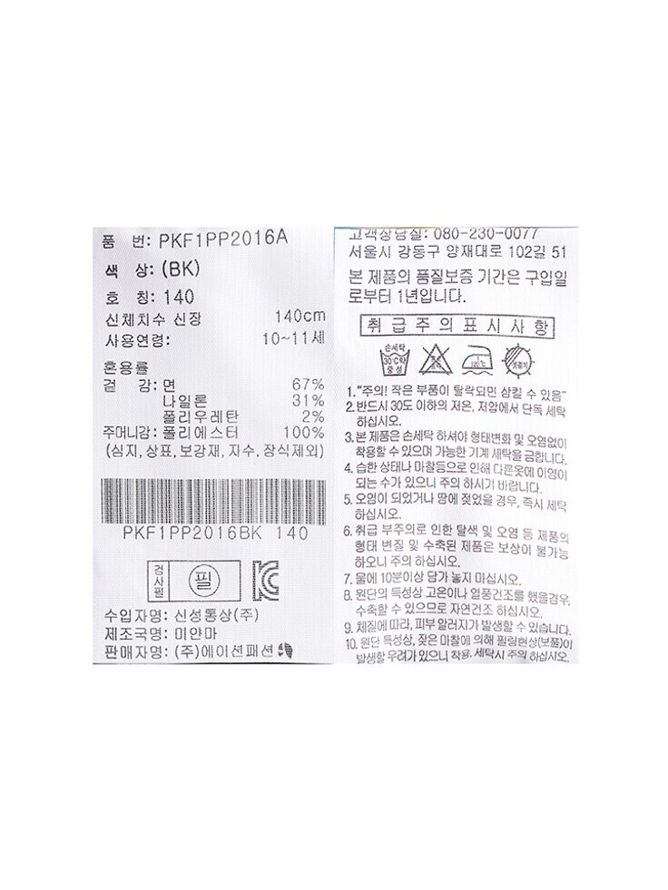 | 6. 세탁방법 및 취급시 주의사항 | 상품상세참조 |