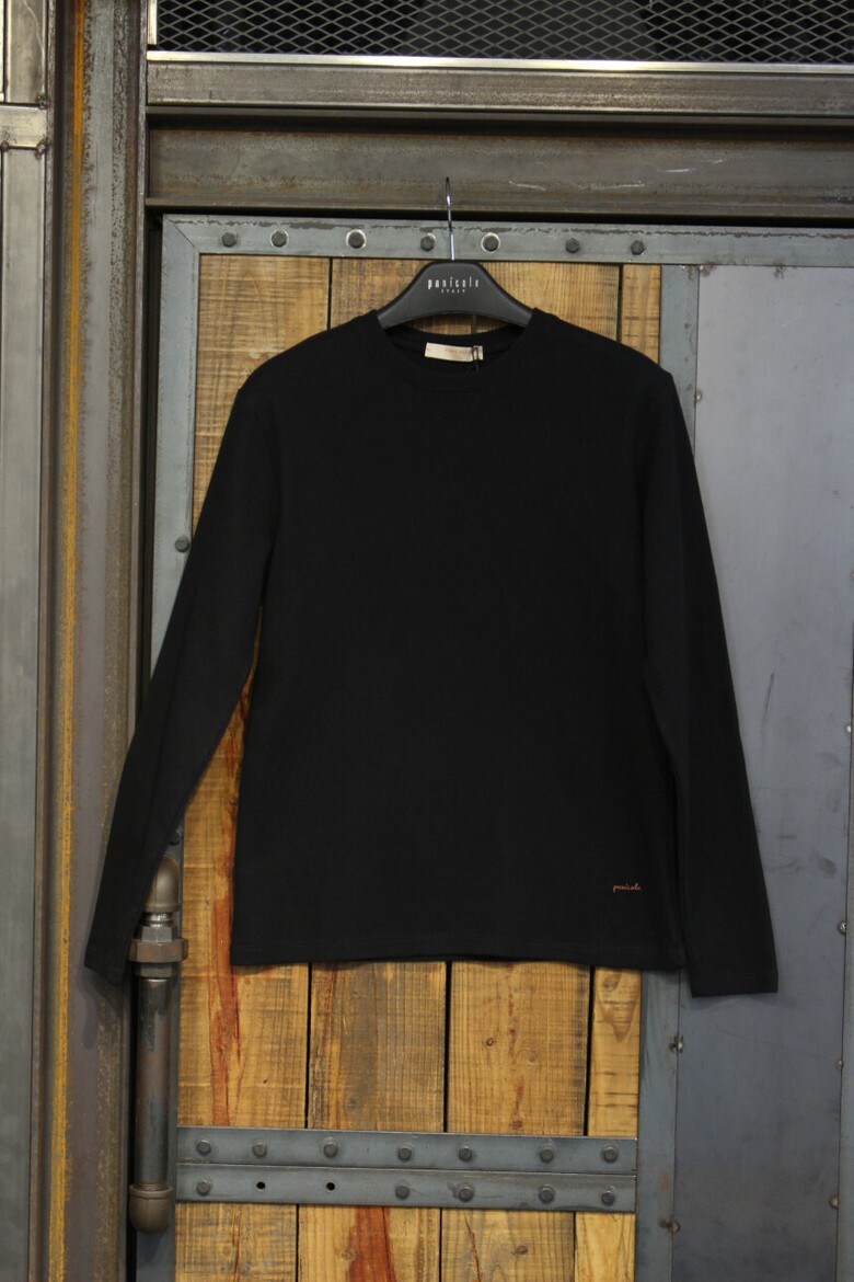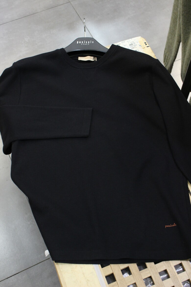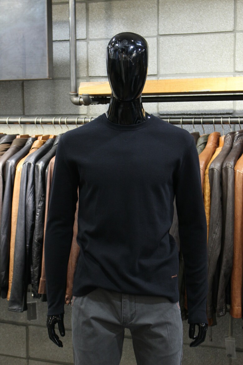 면혼방 블랙와플 라운드넥긴팔티 d-qtee08bk