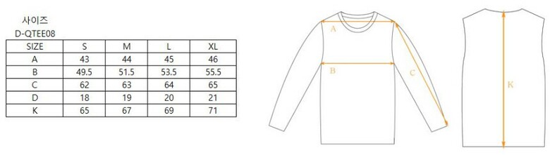 봄가을 기본티로 활용하기 좋으며 자켓이나 점퍼의 이너로 연출할수 있습니다