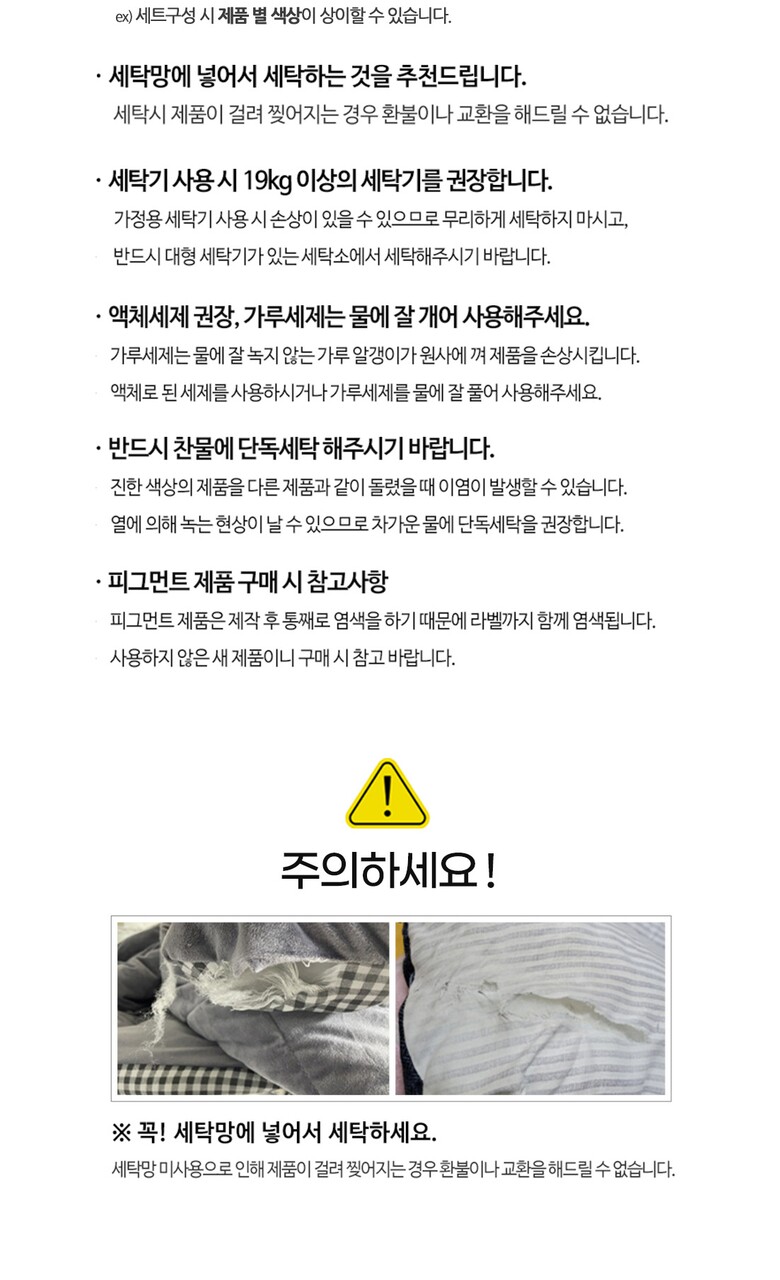 7. 세탁방법 및 취급시 주의사항 | (상품기본정보) 원산지 |