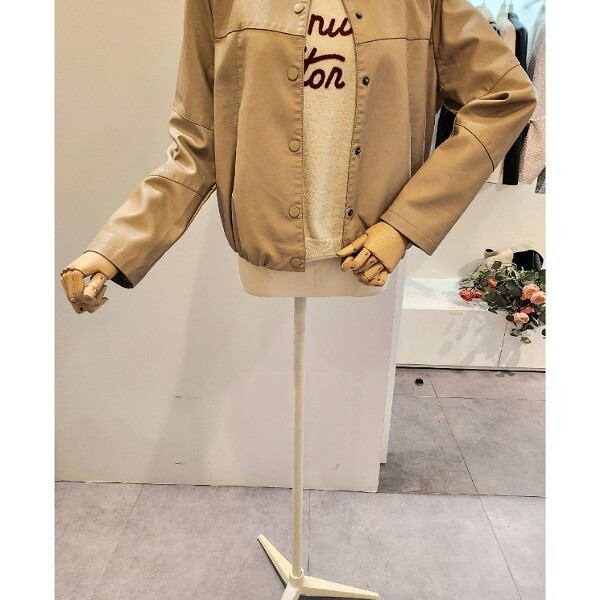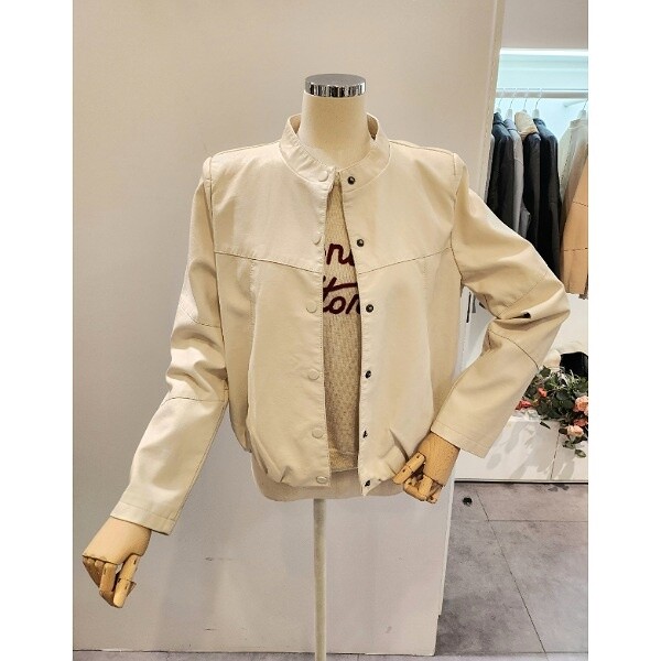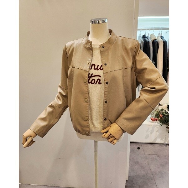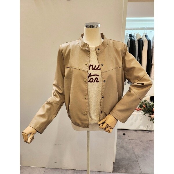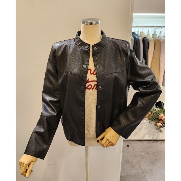 CP2WLJ02_노카라 버튼 레자 자켓