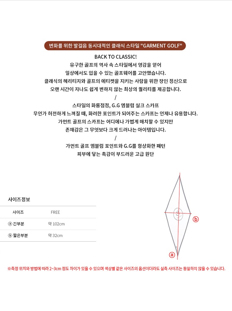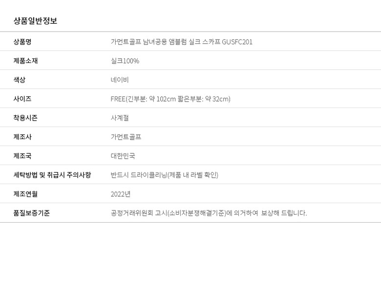 가먼트골프 남녀공용 앰블럼 실크 스카프 GUSFC201