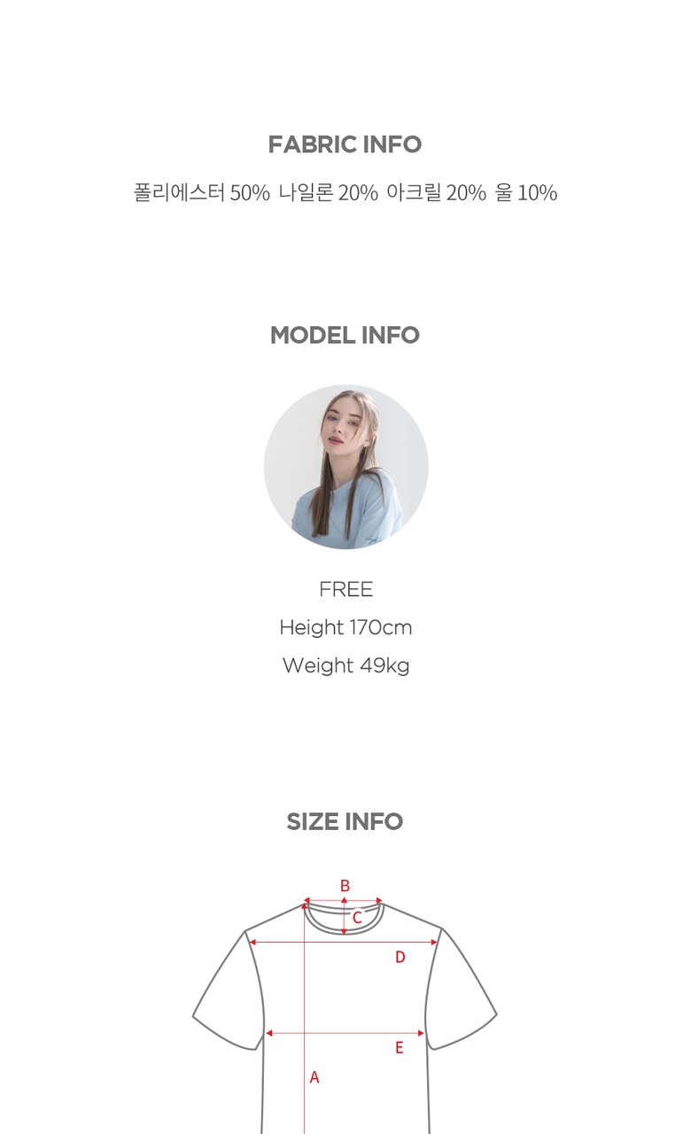 1. 제품 소재 (섬유의 조성 또는 혼용률을 백분율로 표시, 기능성인 경우 성적서 또는 허가서) 폴리에스터50% 나일론20% 아크릴20% 울10%