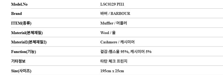 바버 LSC0129 PI11 타탄 체크 프린지 머플러