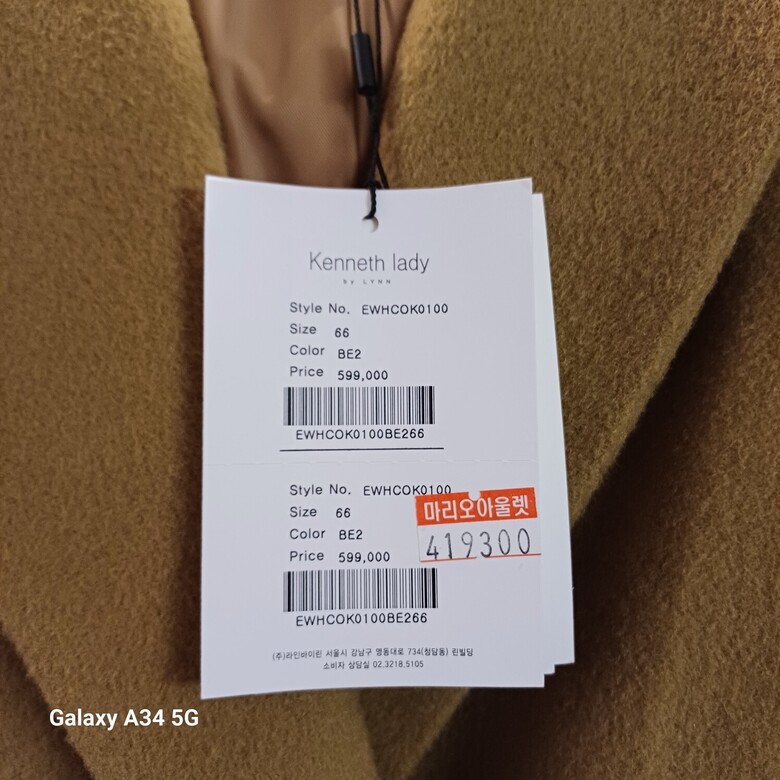 [케네스레이디] 핸드메이드 싱글 울캐시 코트 (장다아 착용) EWHCOK0100