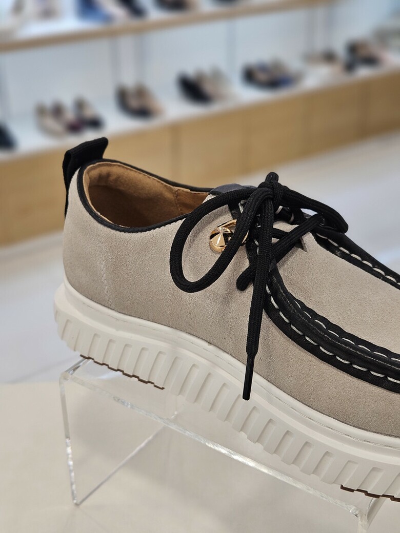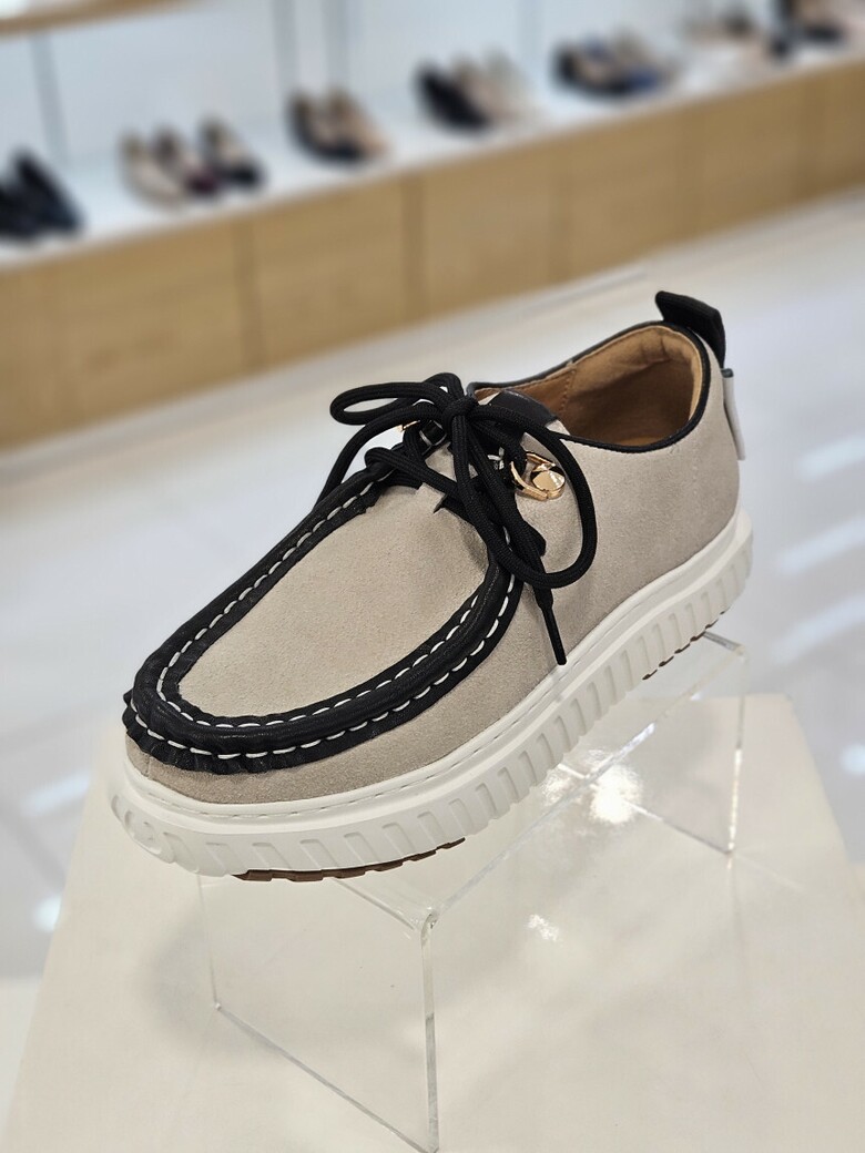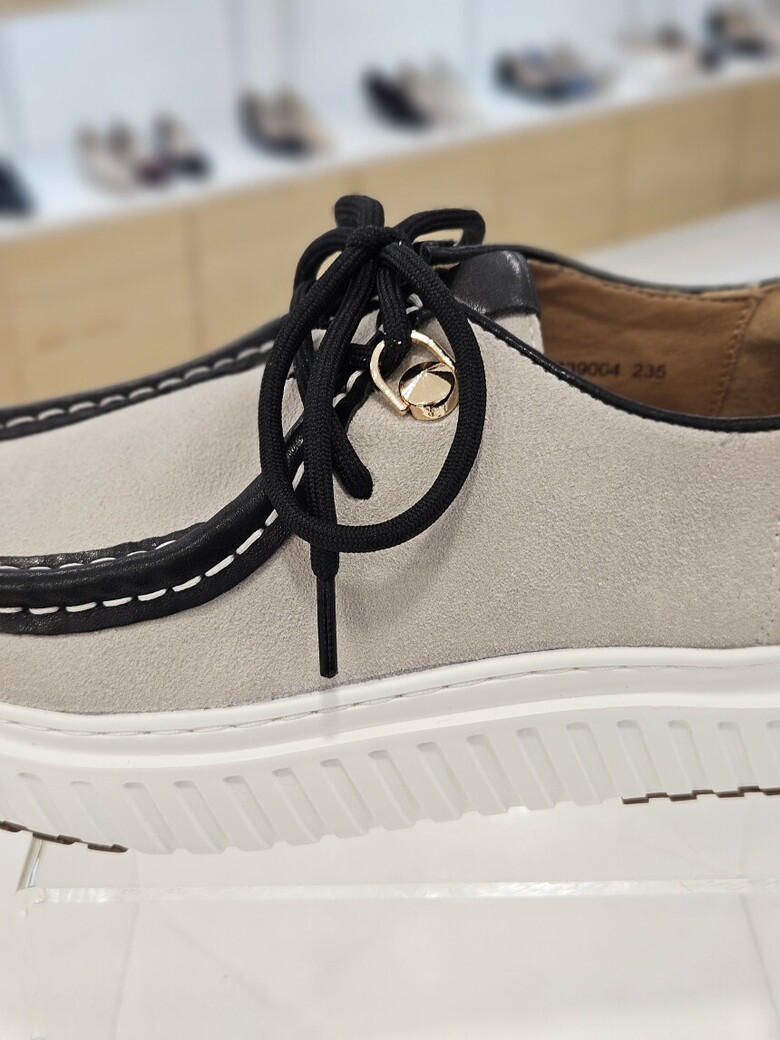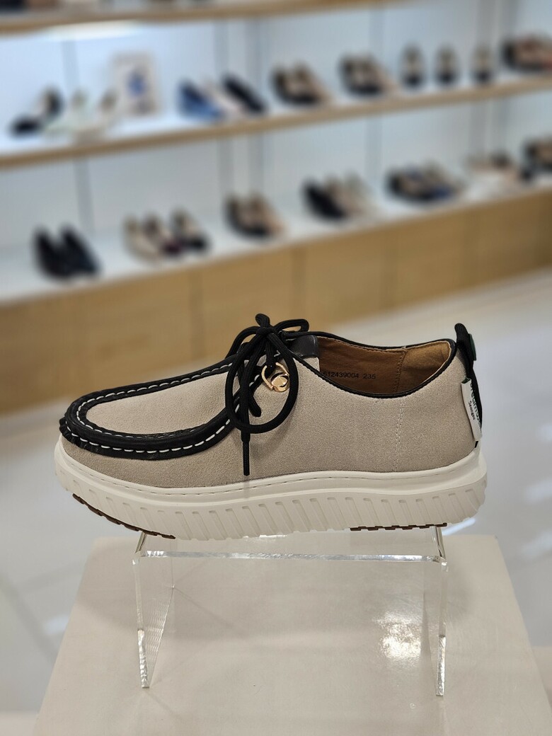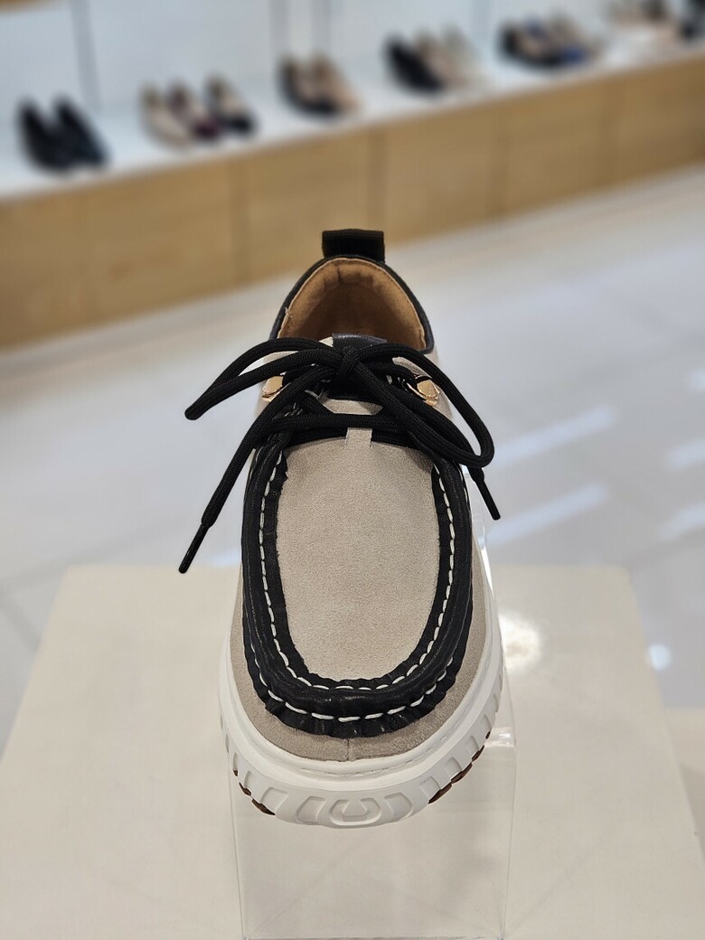 세무소재와 소가죽 소재가 콤비로 제작되 색다른 느낌의 여성 캐주얼 로퍼