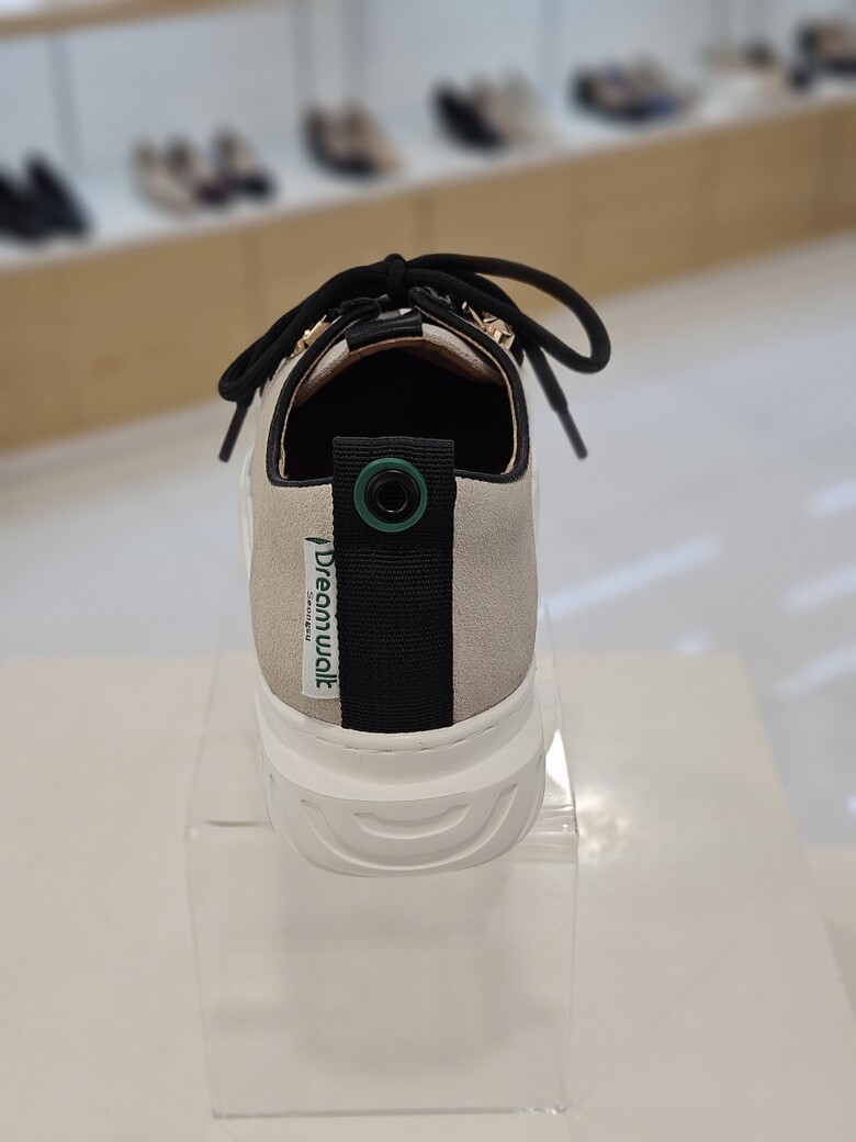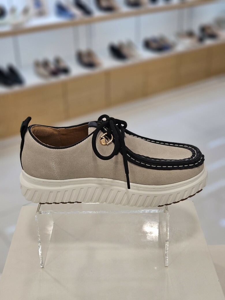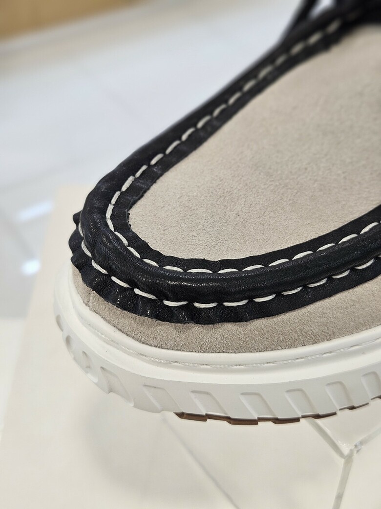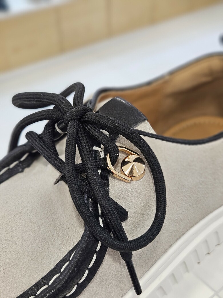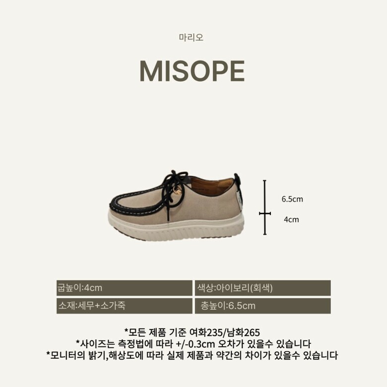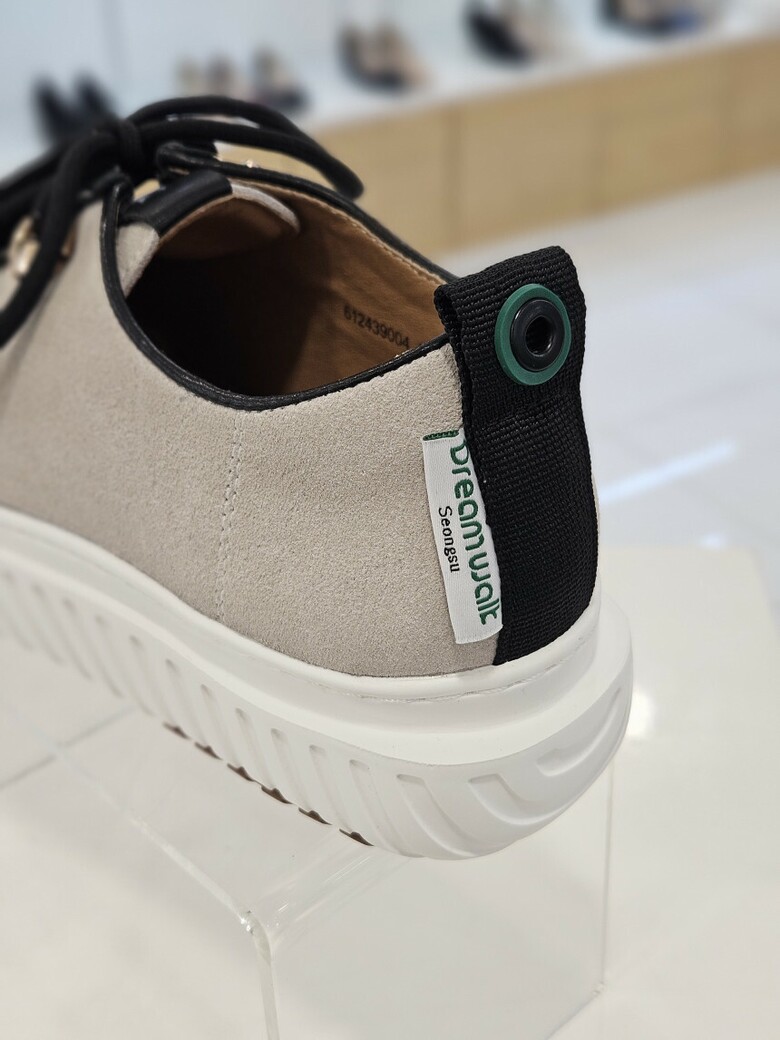 세무소재와 소가죽 소재가 콤비로 제작되 색다른 느낌의 여성 캐주얼 로퍼