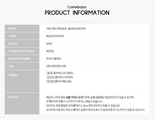 | 1. 품명 및 모델명 | 여성 여행 테마 프린트 레인코트(비옷) |