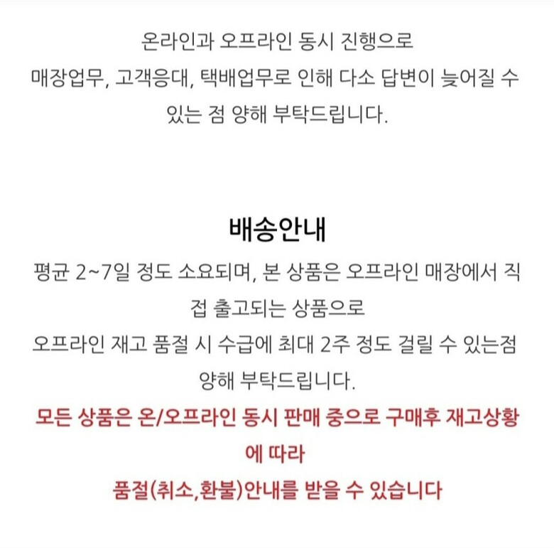 상품불량에 의한 반품, A/S, 품질보증 및 피해보상 등에 관한 사항은 소비자 분쟁해결기준(공정거래위원회 고시) 구매자가 미성년자인 경우에는 상품 구입시 법정대리인이 동의하지 아니하면 미성년자 본인 또는 법정대리인이 구매취소 할 수 있습니다. |