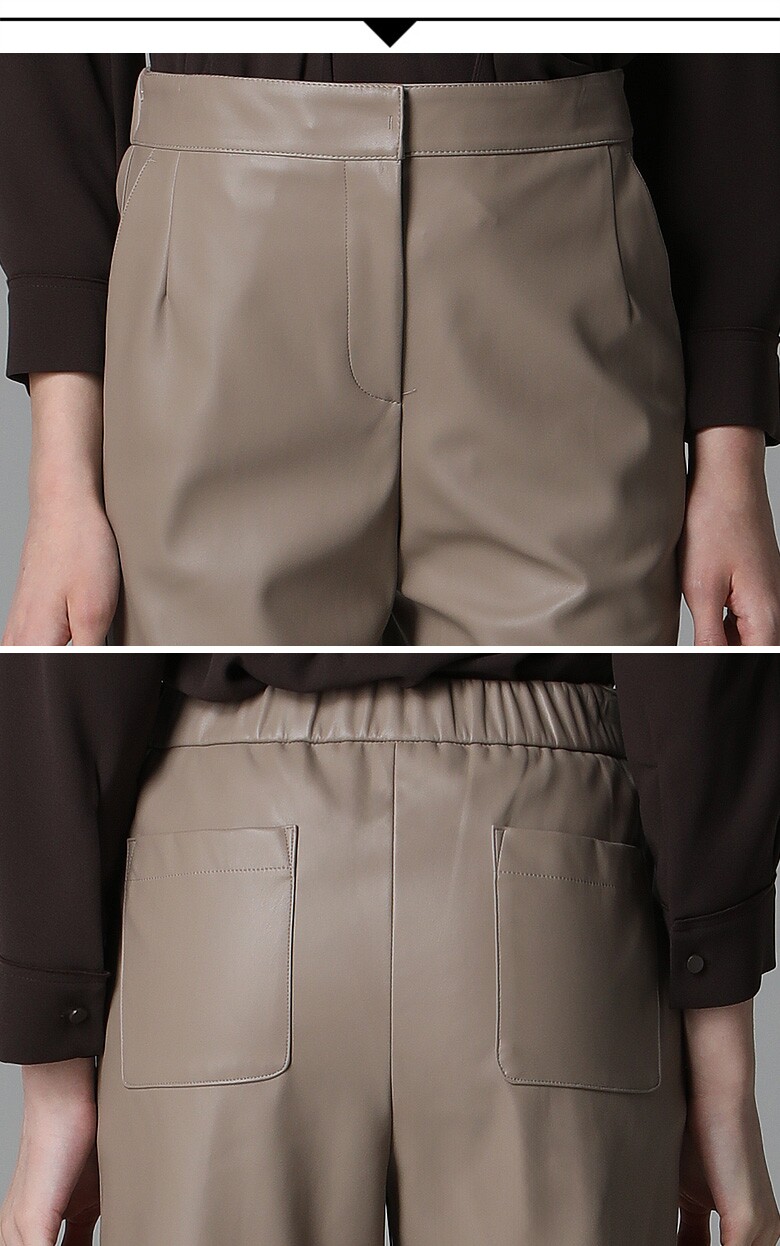 리얼 레더와 흡사한 페이크 레더 소재로 은은한 광택이 나며 부드러운 터치감이 전해지는 팬츠입니다.