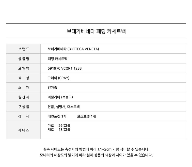 - #리본즈코리아 #591970VCQR11233 #[명품] #보테가베네타 #패딩 #카세트백 #그레이 #591970 #VC #1 #1233 #남성 #가방/핸드백 #크로스/메신저백 #크로스백