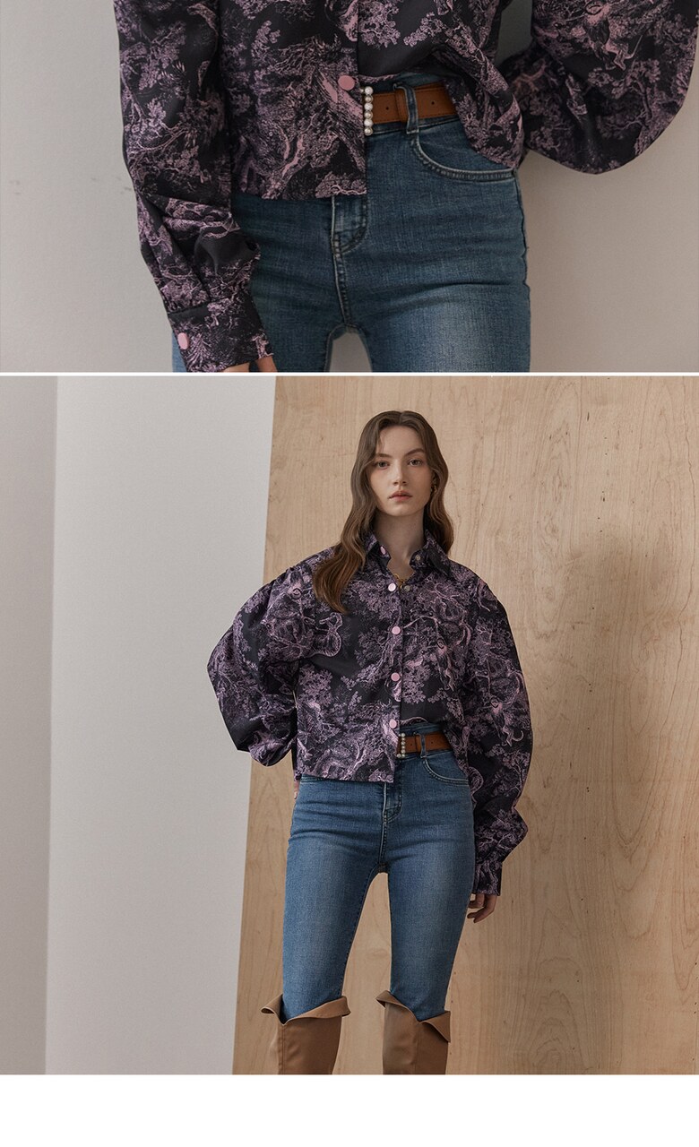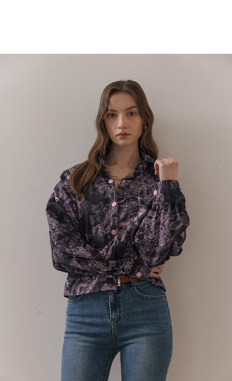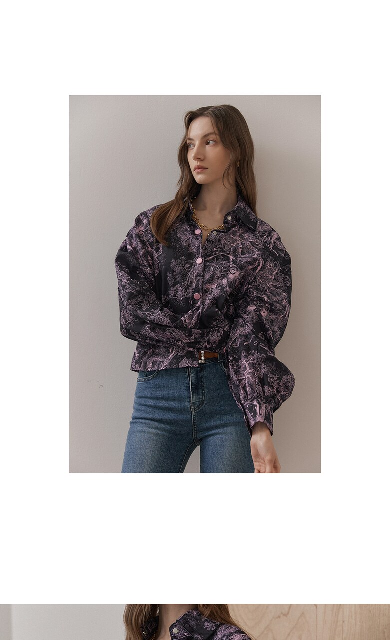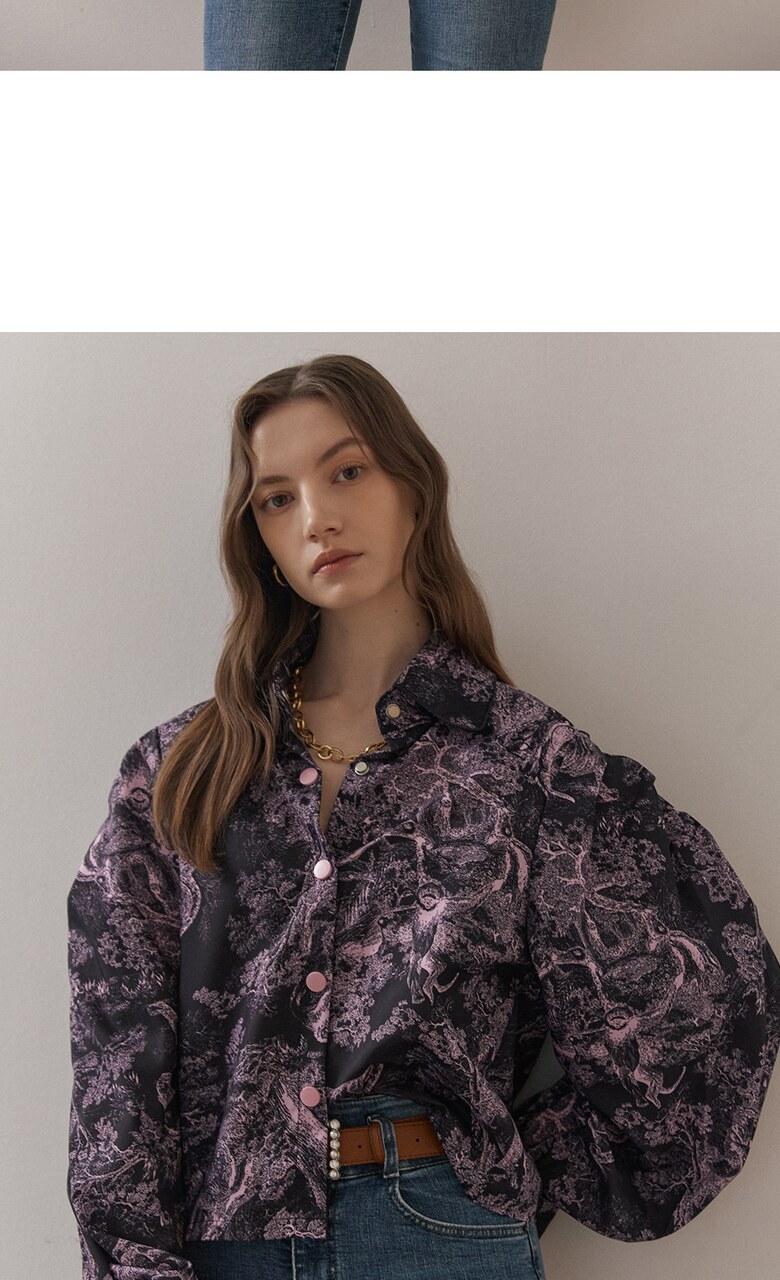 크로키 드로잉 볼륨소매 셔츠 블라우스