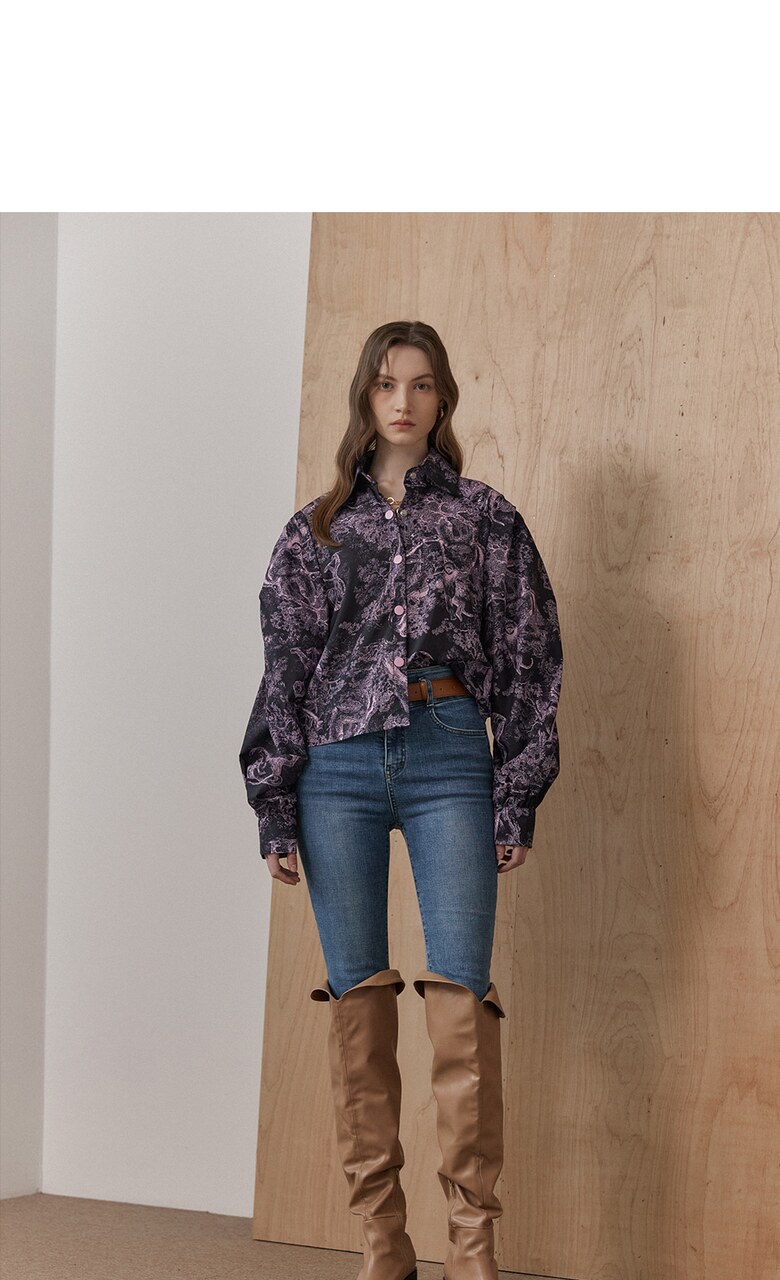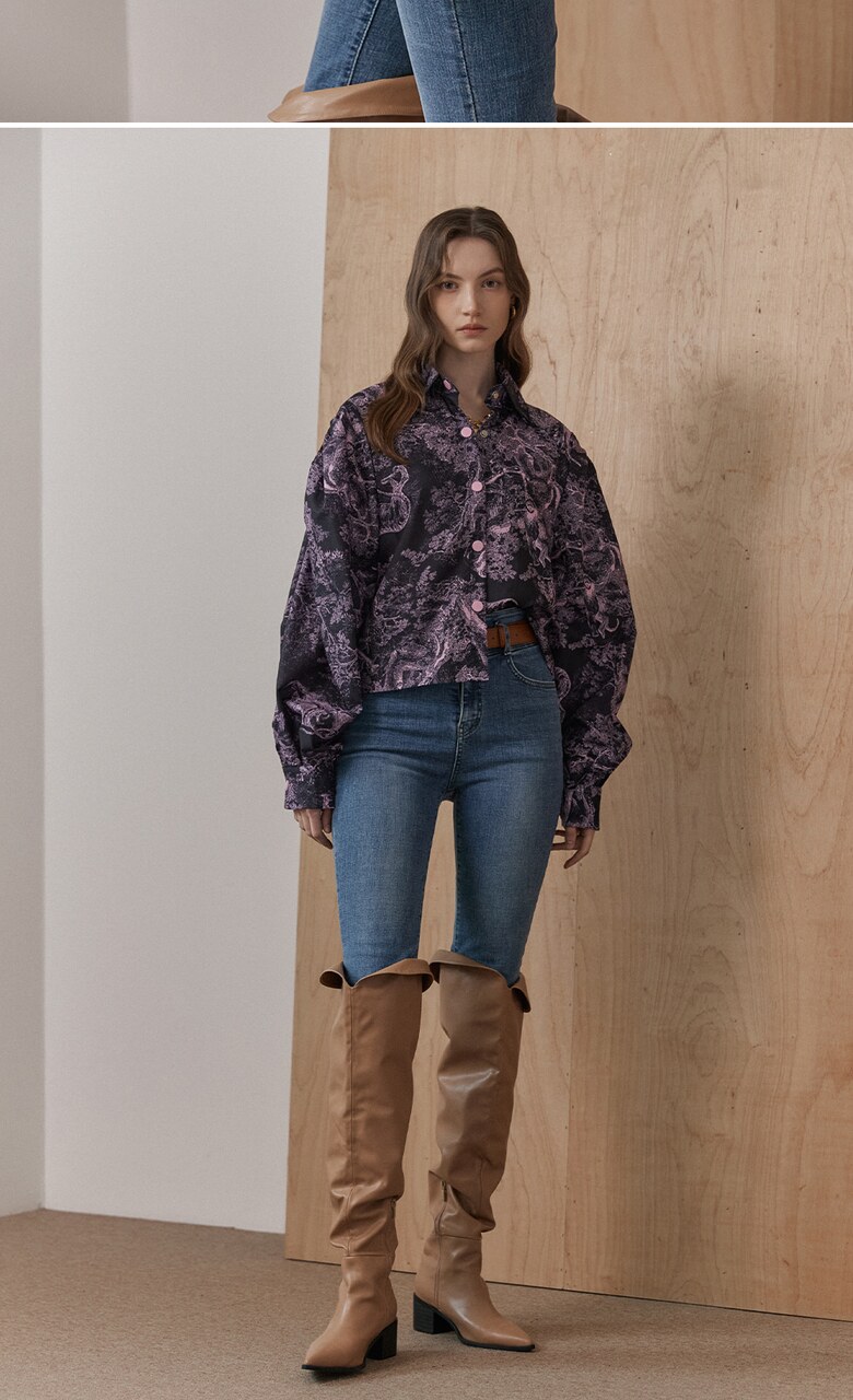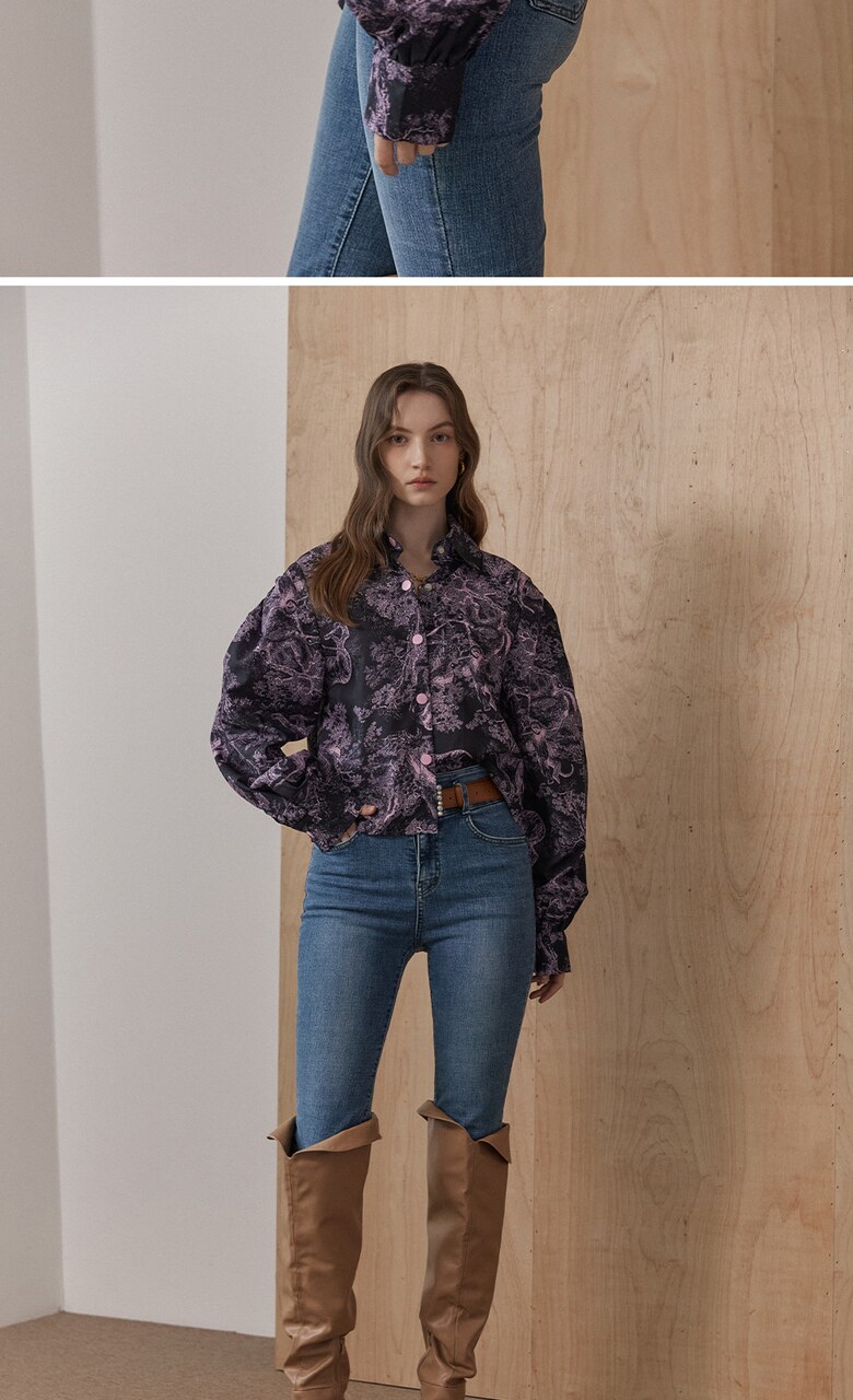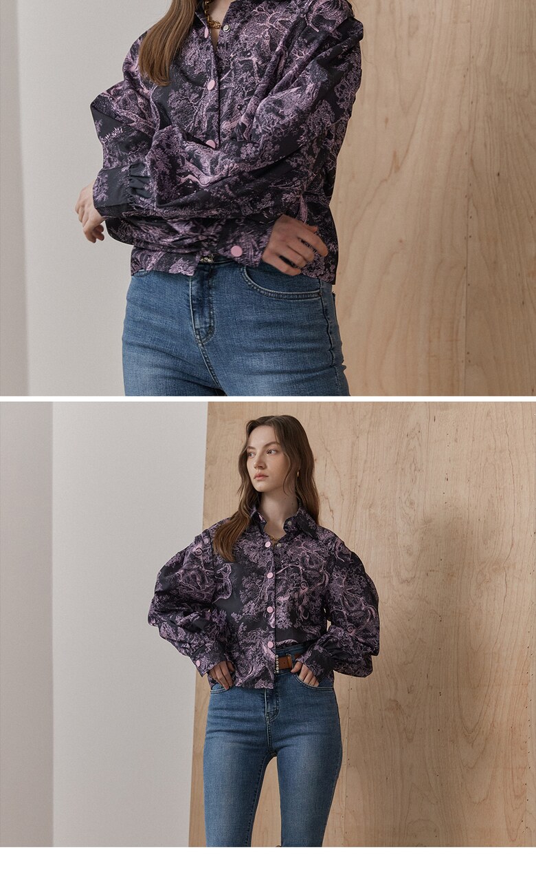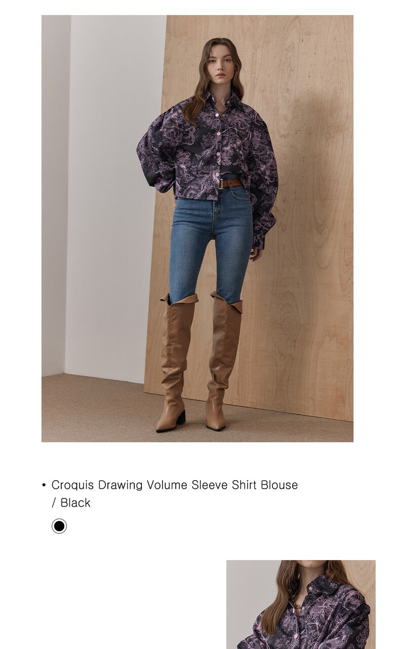 크로키 드로잉 볼륨소매 셔츠 블라우스