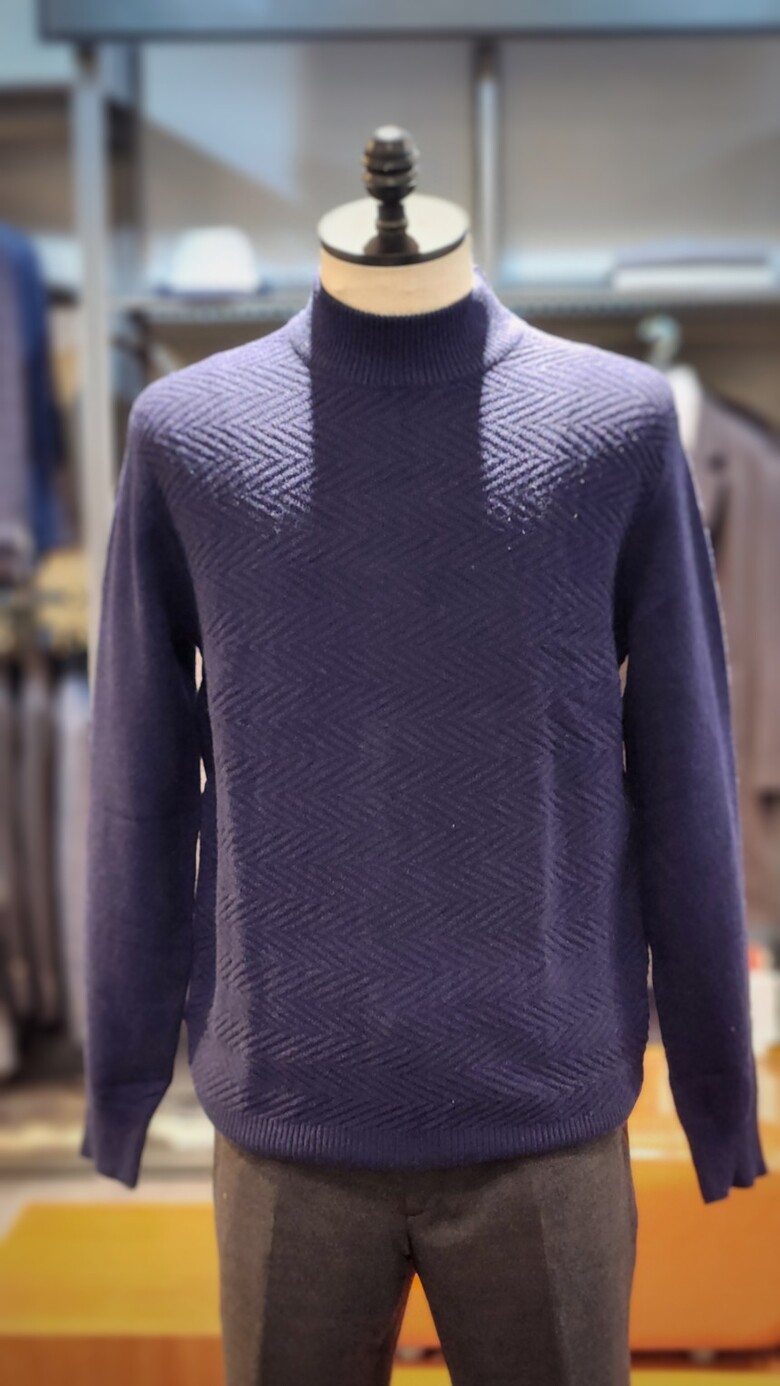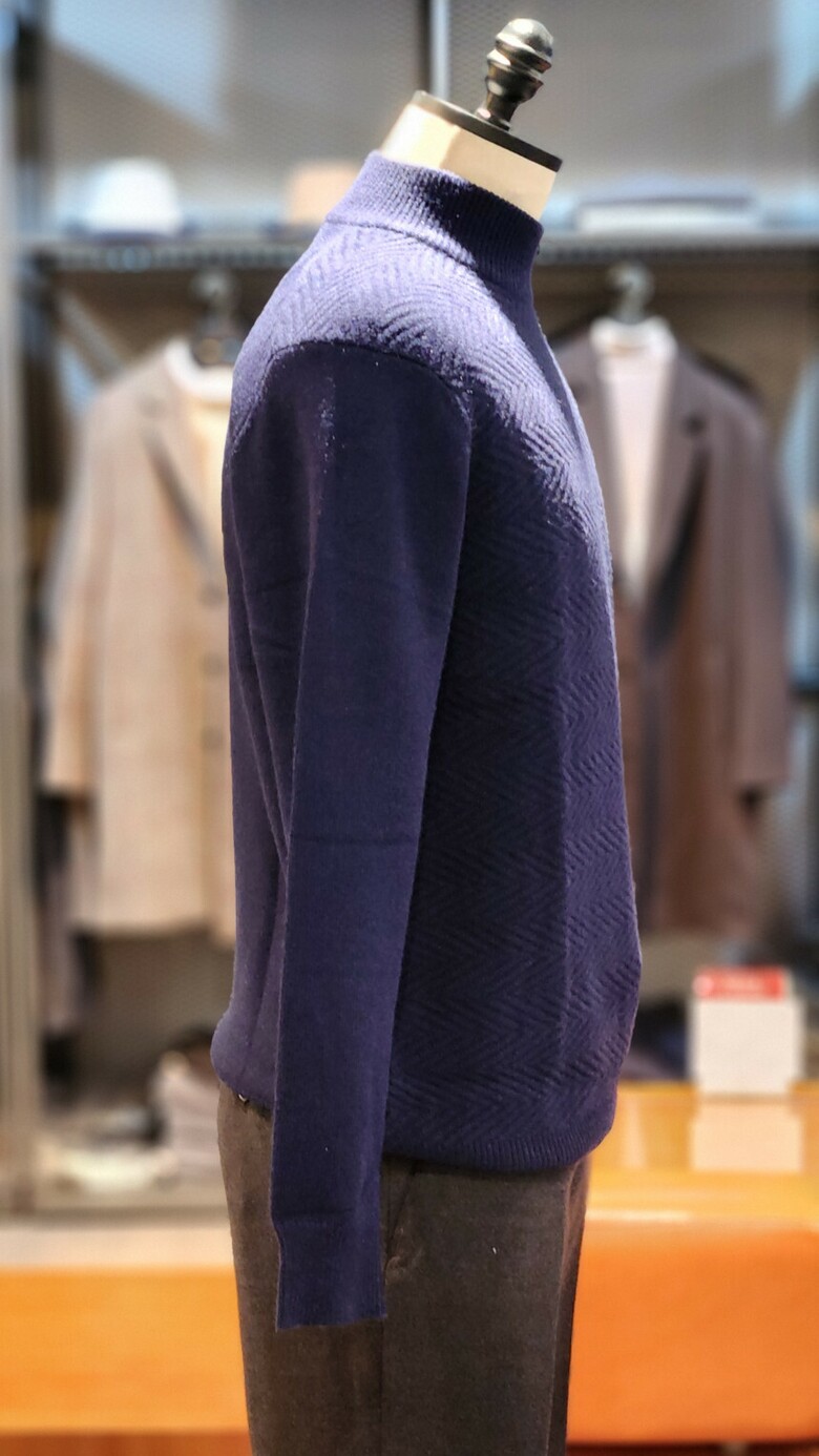 네이비 컬러감으로 모든 아우터에 이너웨어로 잘 어울리는 컬러감이 인상적인 상품입니다. 하이엔드급 퀄리티의 상품으로 다양한 코디에 용이한 니트입니다.