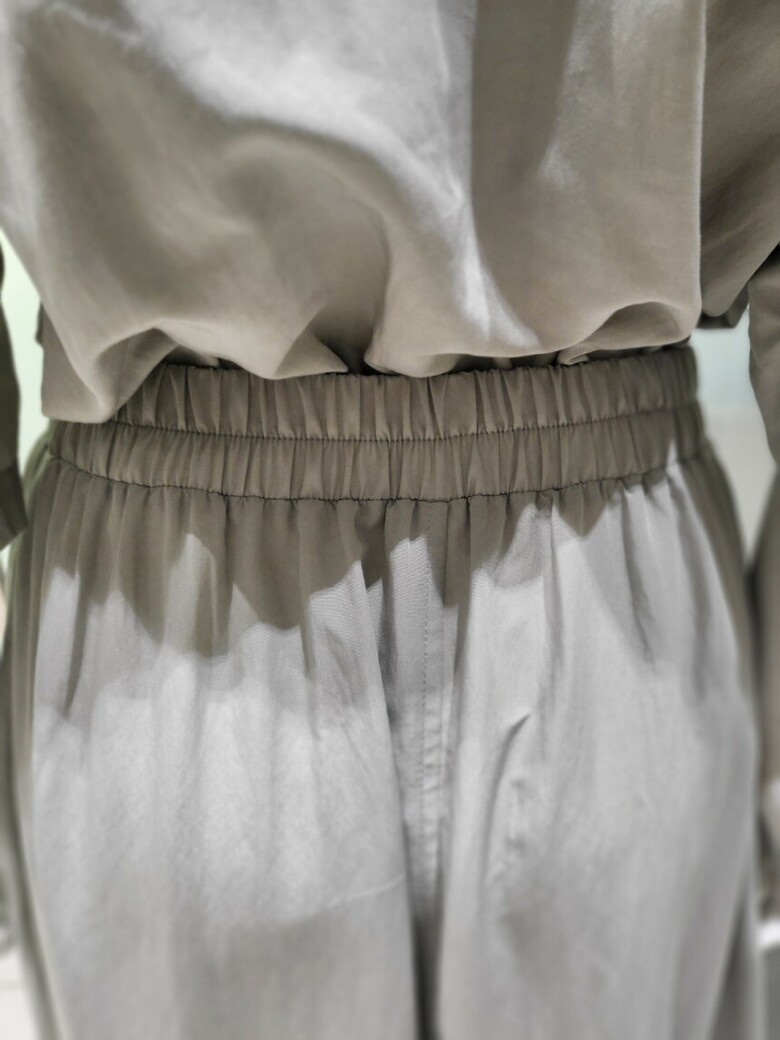 허리 라인은 밴딩 처리되어 체형에 따라 안정감 있는 핏을 연출하며 ,