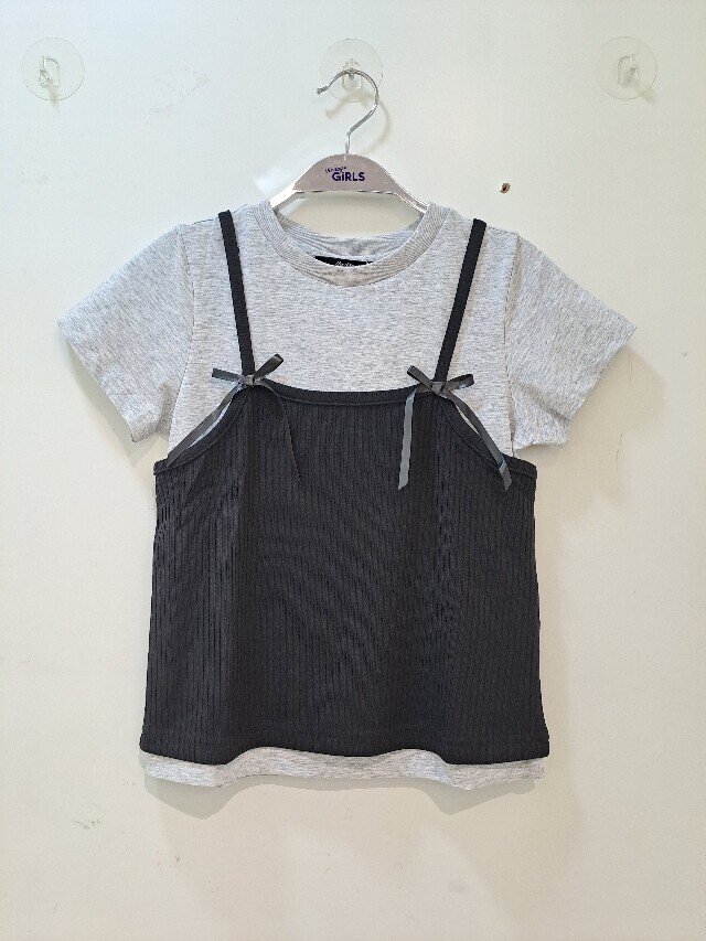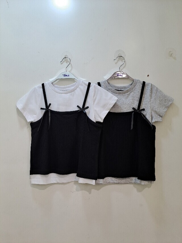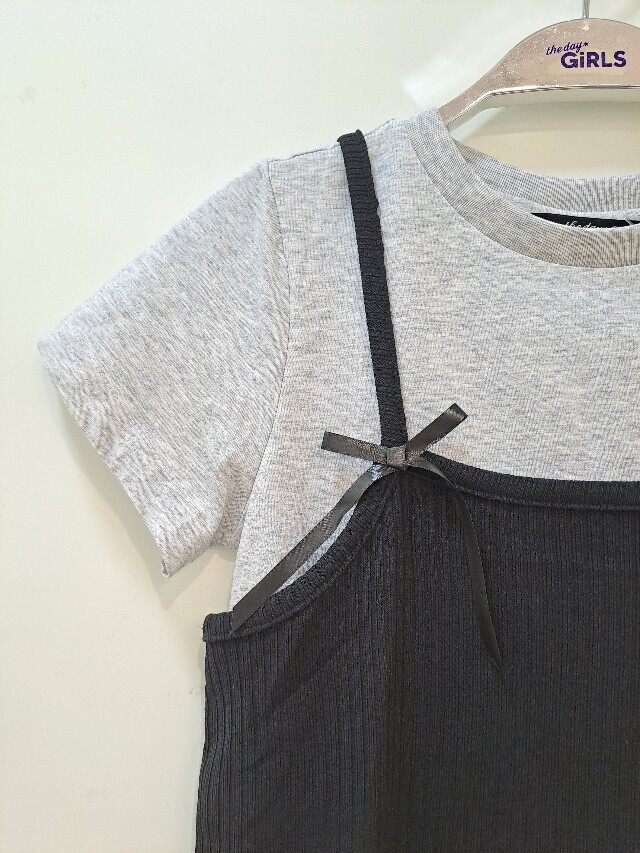 더데이걸|*|나시 레이어드 티셔츠|*|귀여운 포인트의 리본|*|요즘 아이들이 좋아하는 스타일의 나시세트 제품입니다.