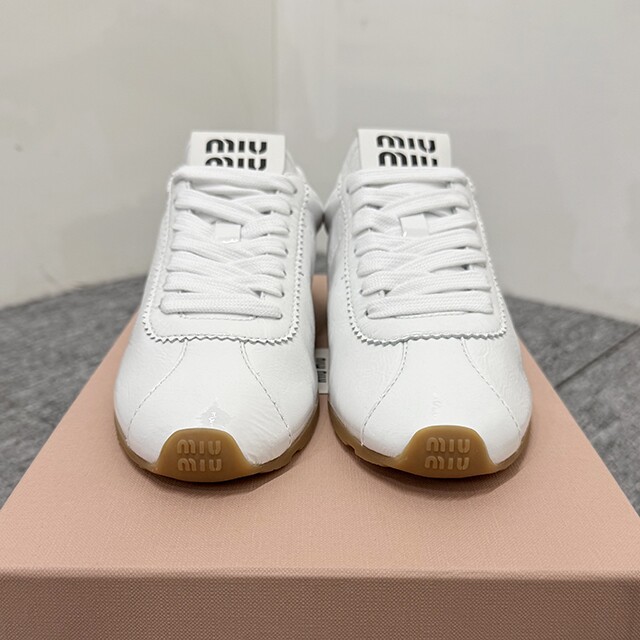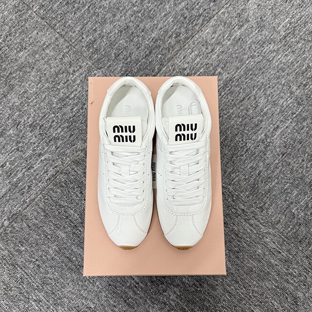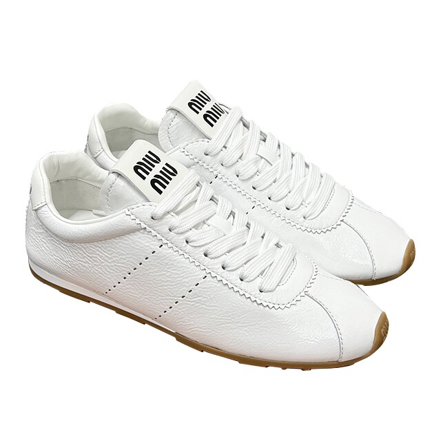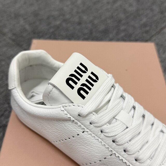 [명품] 25SS 미우미우 여성 로고 가죽 스니커즈 / 화이트 5E114E 6OR F0009