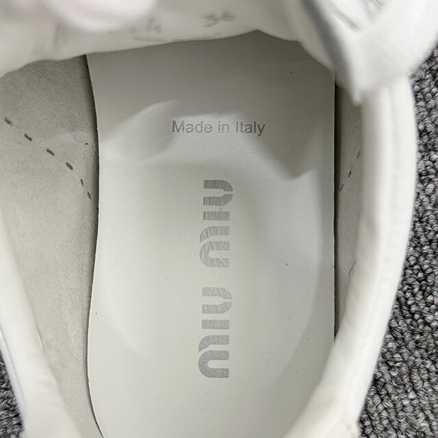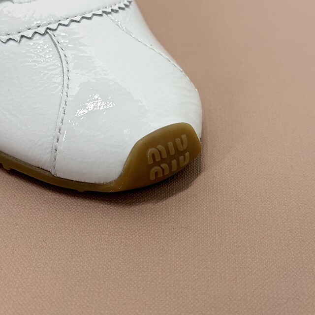 - #리본즈코리아 #5E114E6ORF0009 #[명품] #25SS #미우미우 #여성 #로고 #가죽 #스니커즈 #/ #화이트 #5E114E #6OR #F0009 #슈즈 #로우탑스니커즈