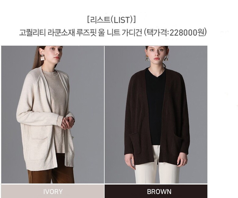 [리스트(LIST)] 고퀄러티 라쿤소재 루즈핏 울 니트 가디건 (택가격:228000원)