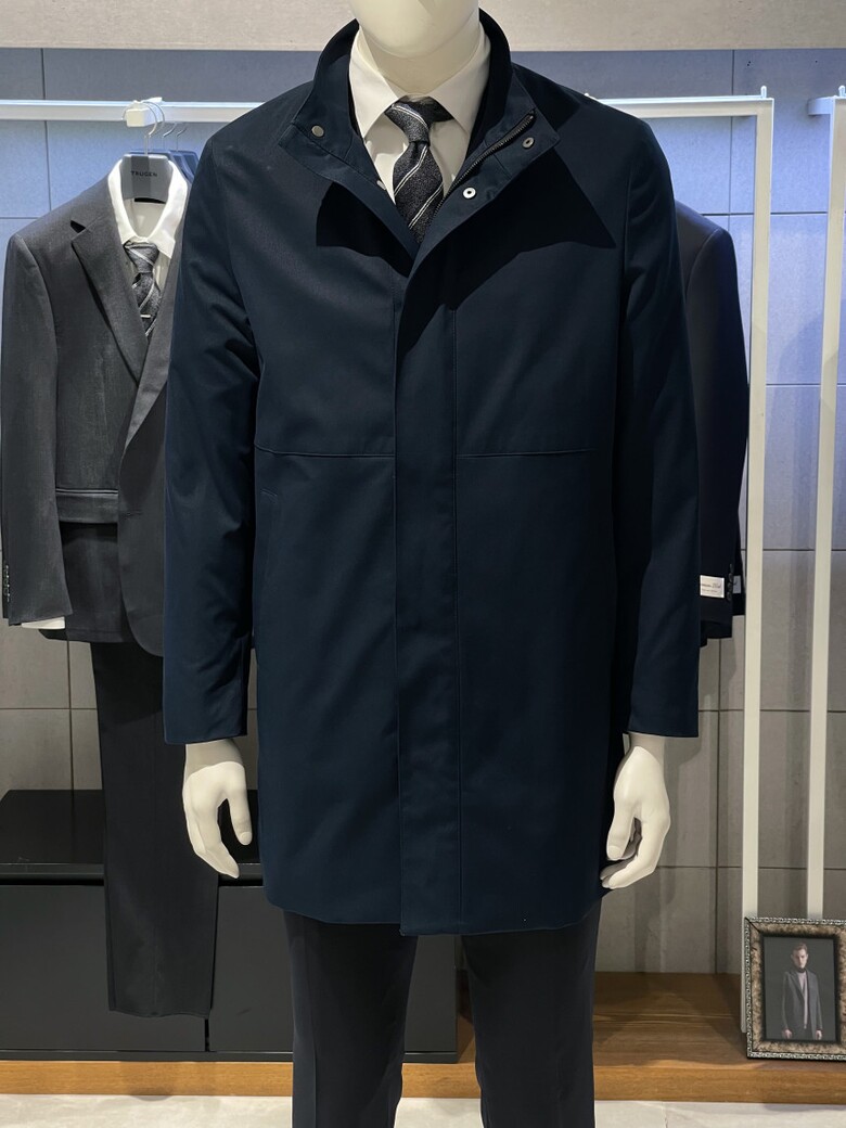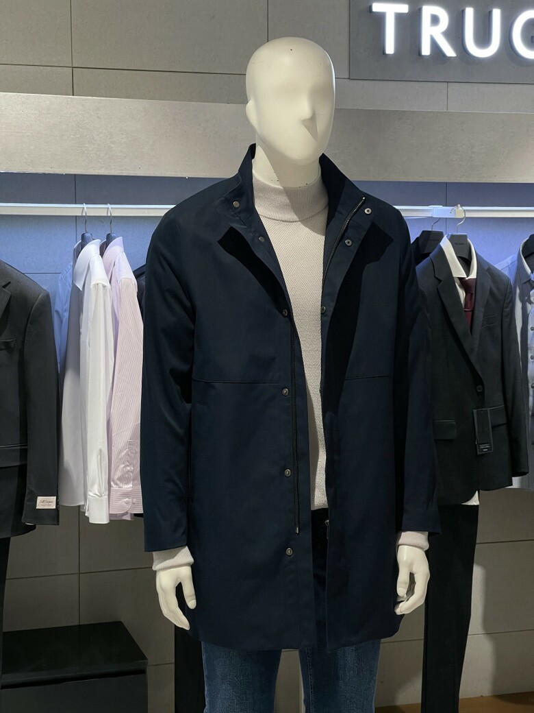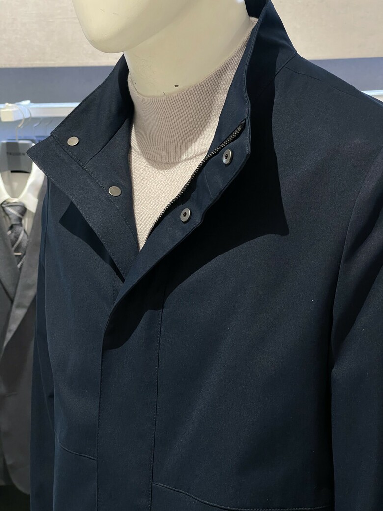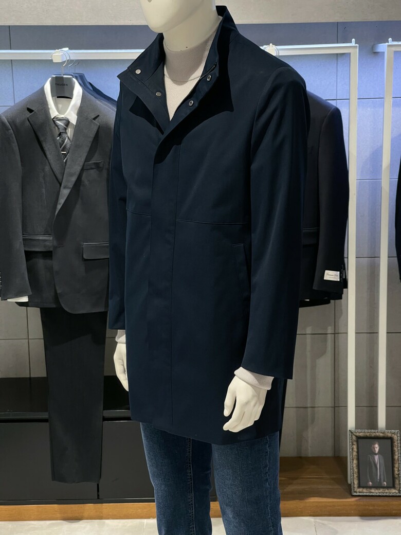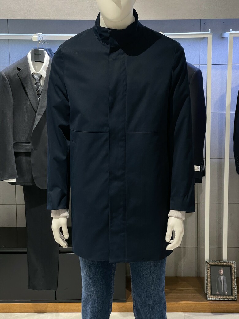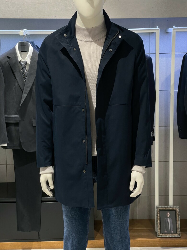 트루젠 네이비 스탠카라 하프기장 트렌치 남자 코트 2322CL001014