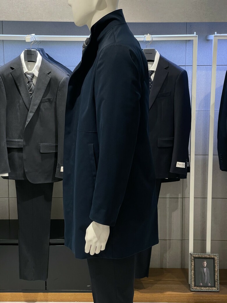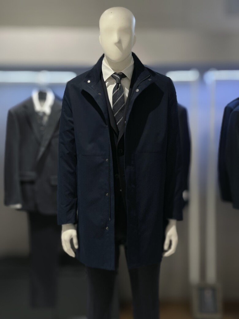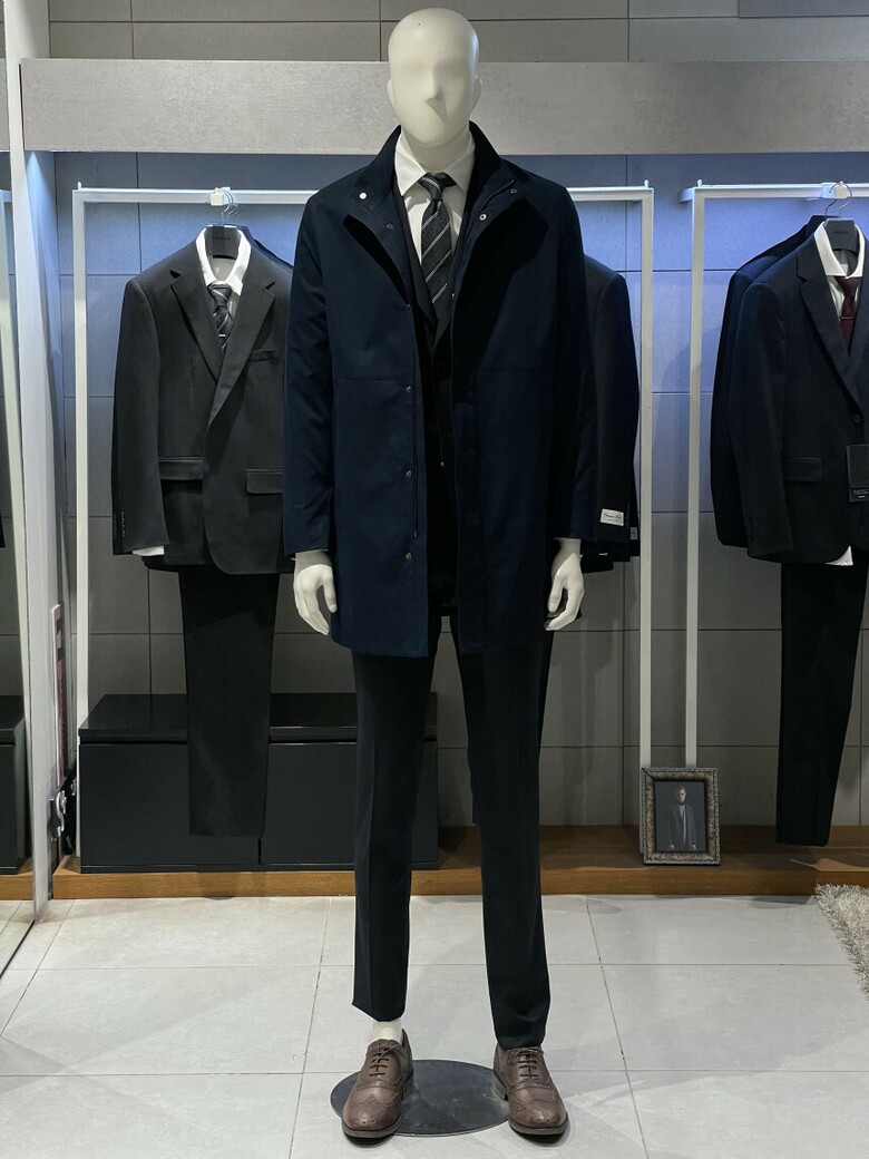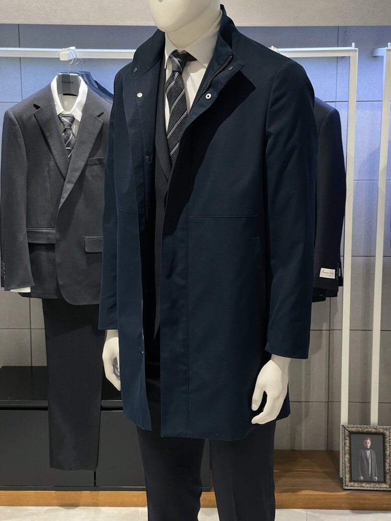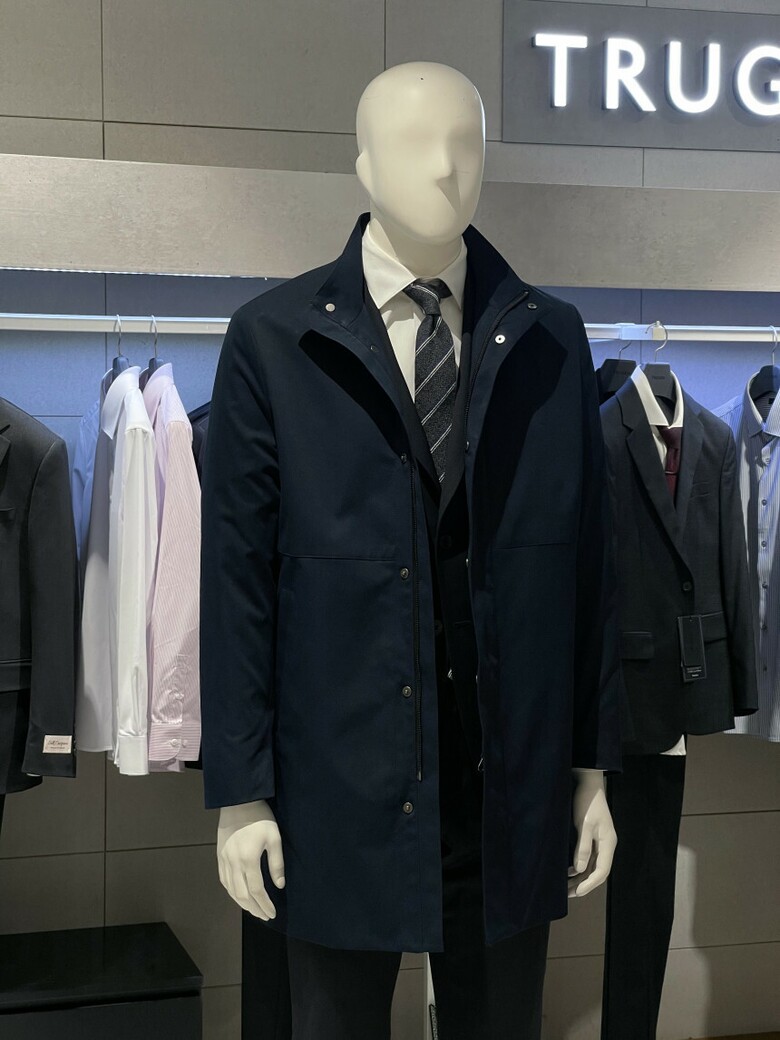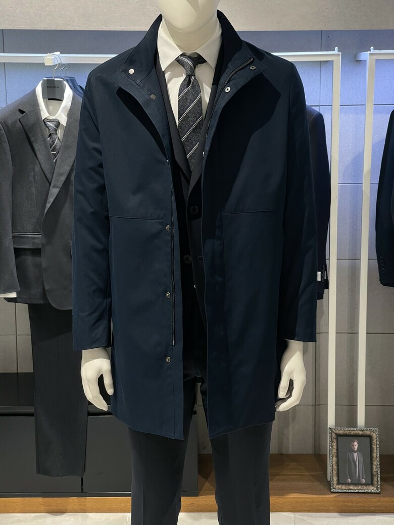 트루젠 네이비 스탠카라 하프기장 트렌치 남자 코트 2322CL001014