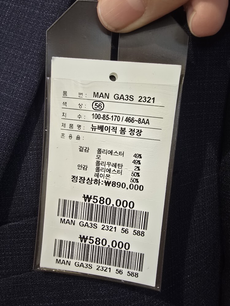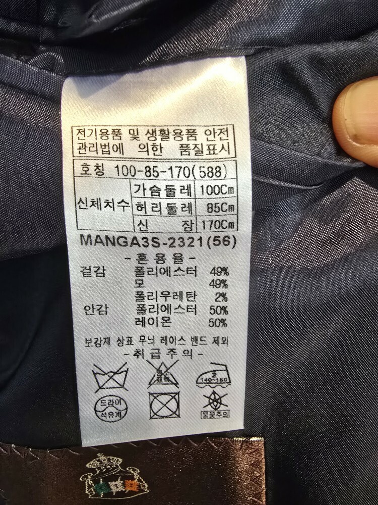 겉감 : 폴리에스터49% 모49% 폴리우레탄2%