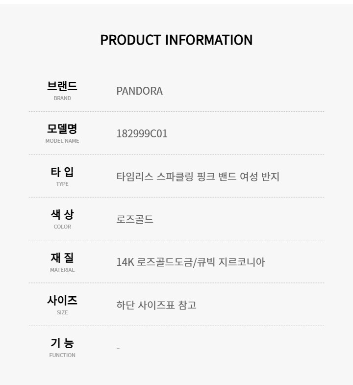 1. 소재 / 순도 / 밴드재질 로즈골드 / 쥬얼리 - 14K 로즈골드도금 / 팬던트 - 큐빅 지르코니아