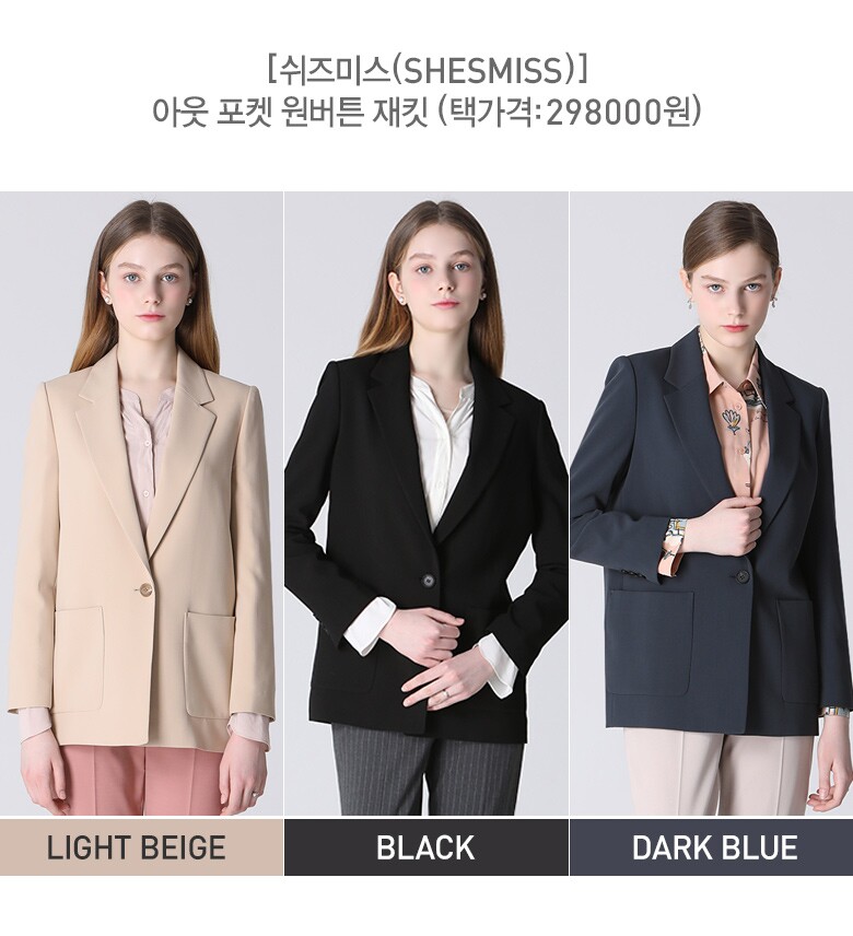 [쉬즈미스(SHESMISS)] 똑떨어지는 아웃 포켓 원버튼 재킷 (택가격:298000원)
