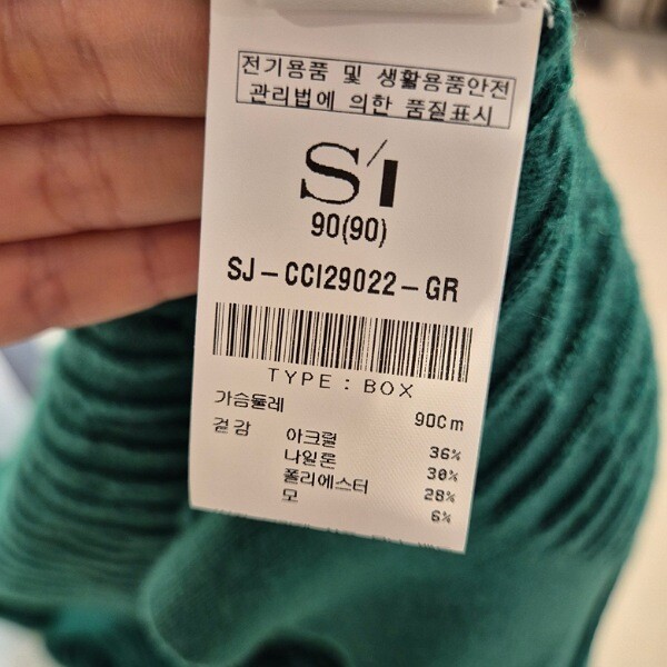| 1. 제품 소재 (섬유의 조성 또는 혼용률을 백분율로 표시, 기능성인 경우 성적서 또는 허가서) | 아크릴36% 나일론30% 폴리에스터28% 모6% |