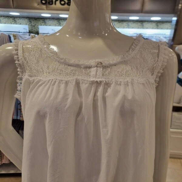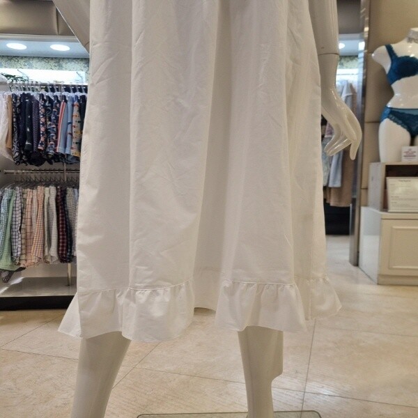 바바라 오가닉면100%소재 원피스잠옷상의민소매 8부기장 원피스 상변 단추일부오픈형라운드넥 /레이스100%면소재 깨끗한 아이보리 컬러