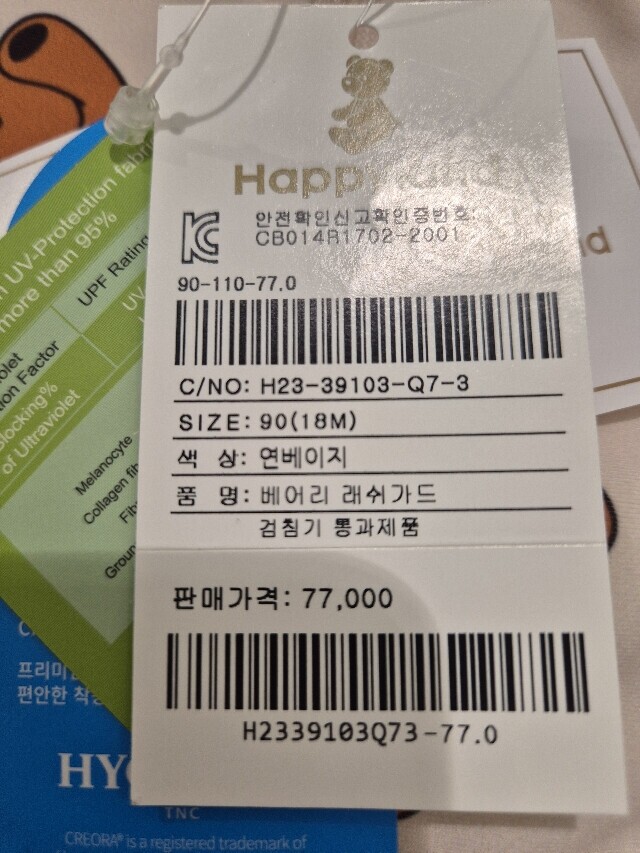 | 1. 제품 소재 (섬유의 조성 또는 혼용률을 백분율로 표시, 기능성인 경우 성적서 또는 허가서) | 상품상세참조 |