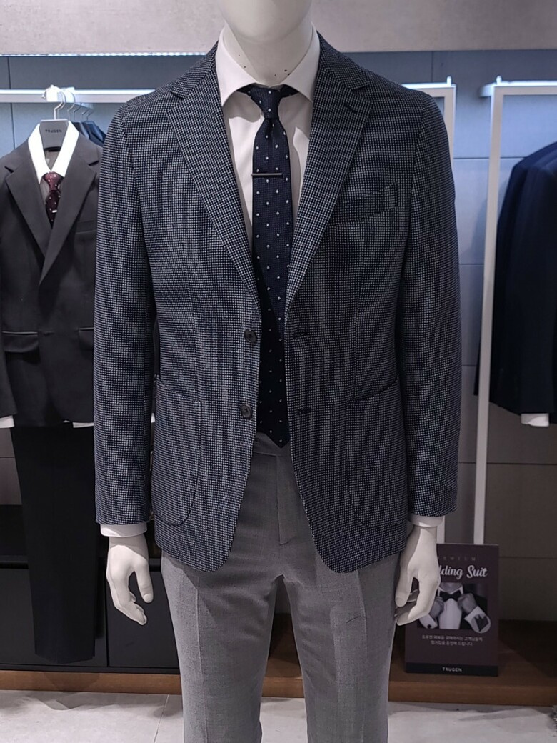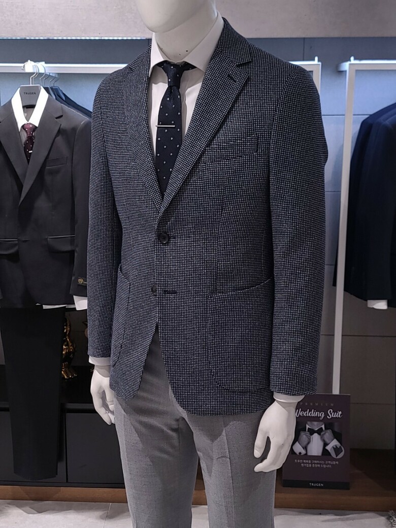 트루젠 봄여름 블루네이비 투톤짜임 기본핏 콤비 캐주얼 남자 자켓 2211JK003014
