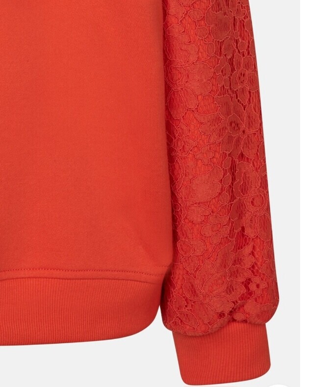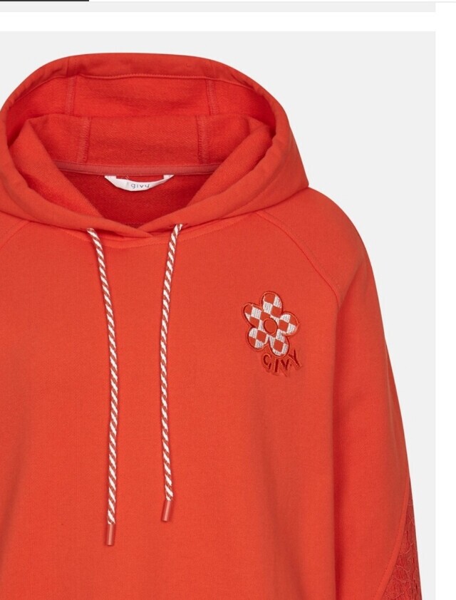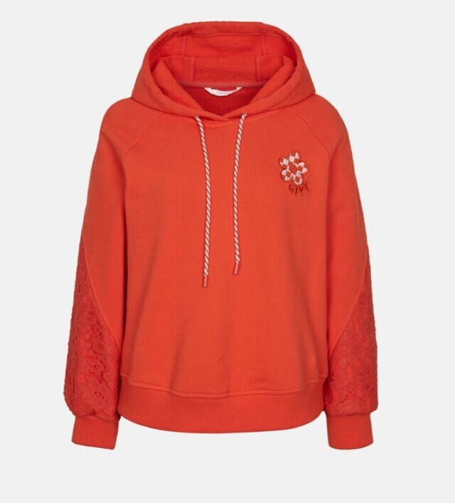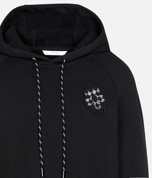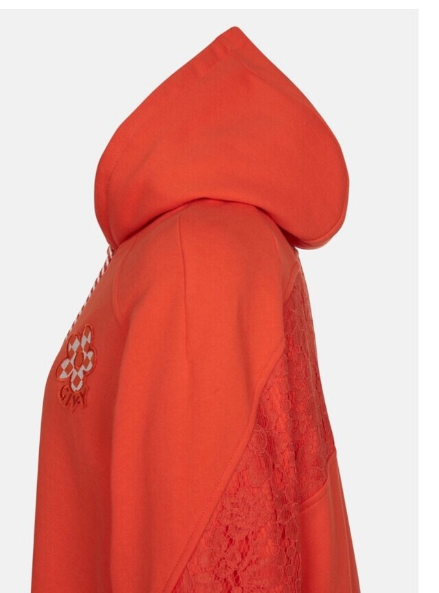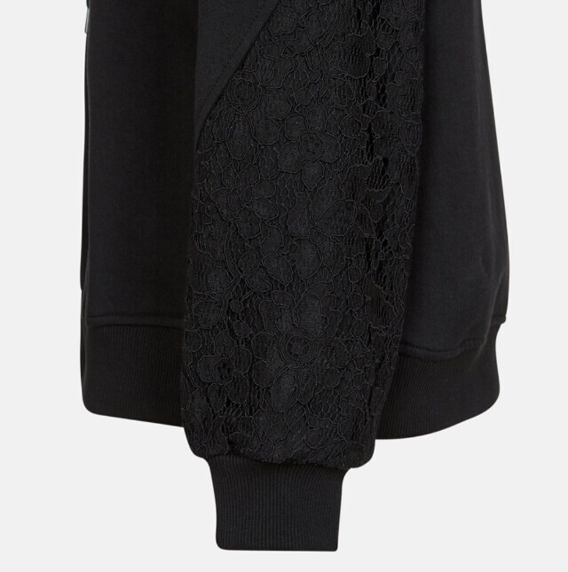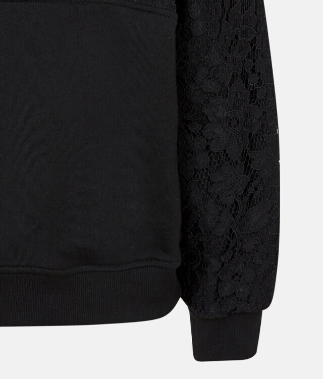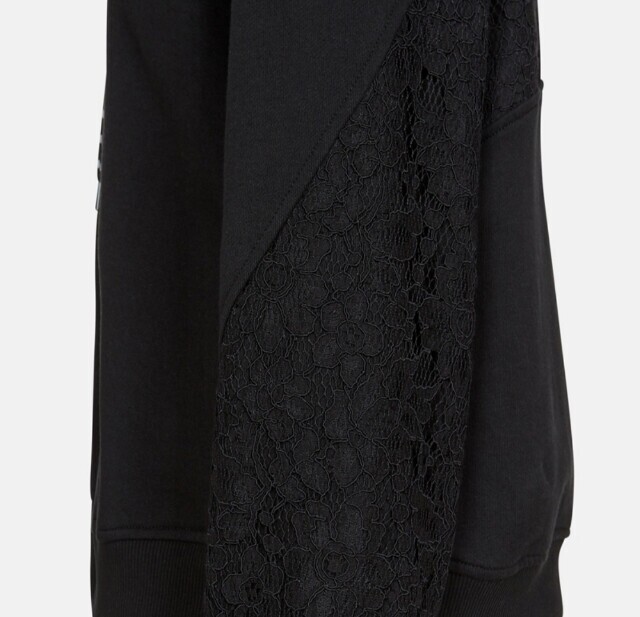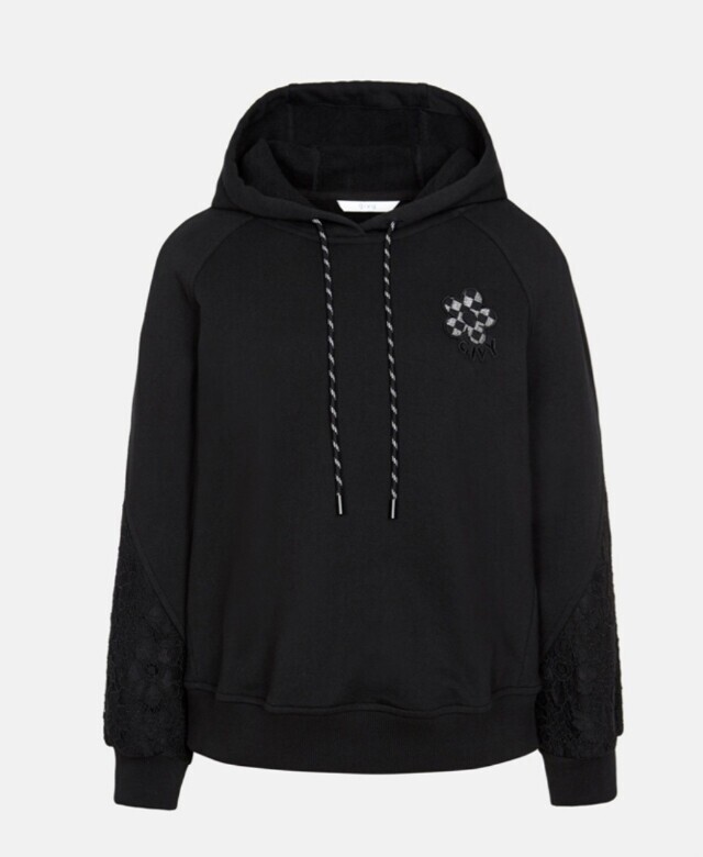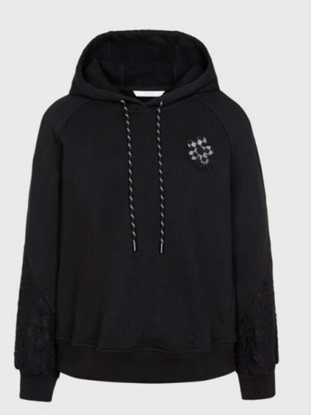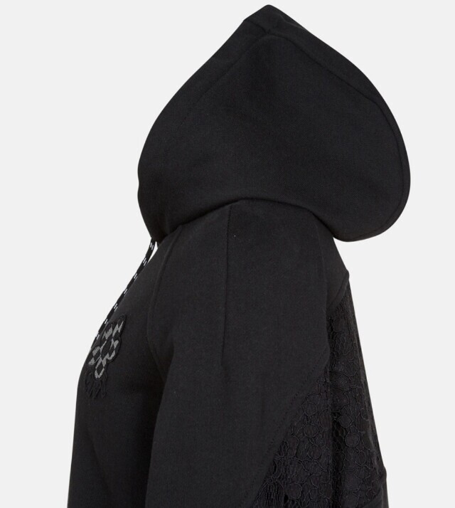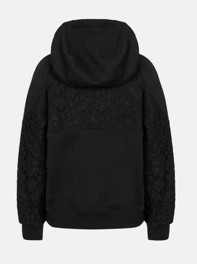 레이스원단이 덧대어져 앳지있는 후드티셔츠입니다.