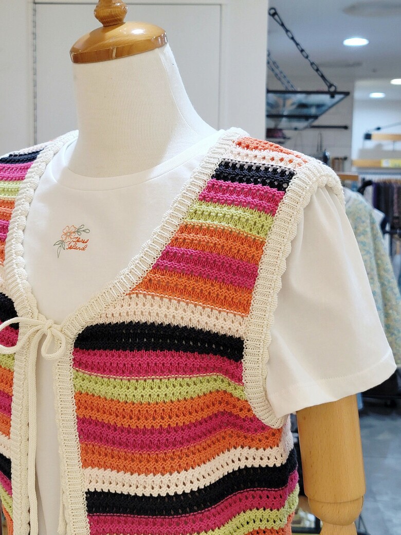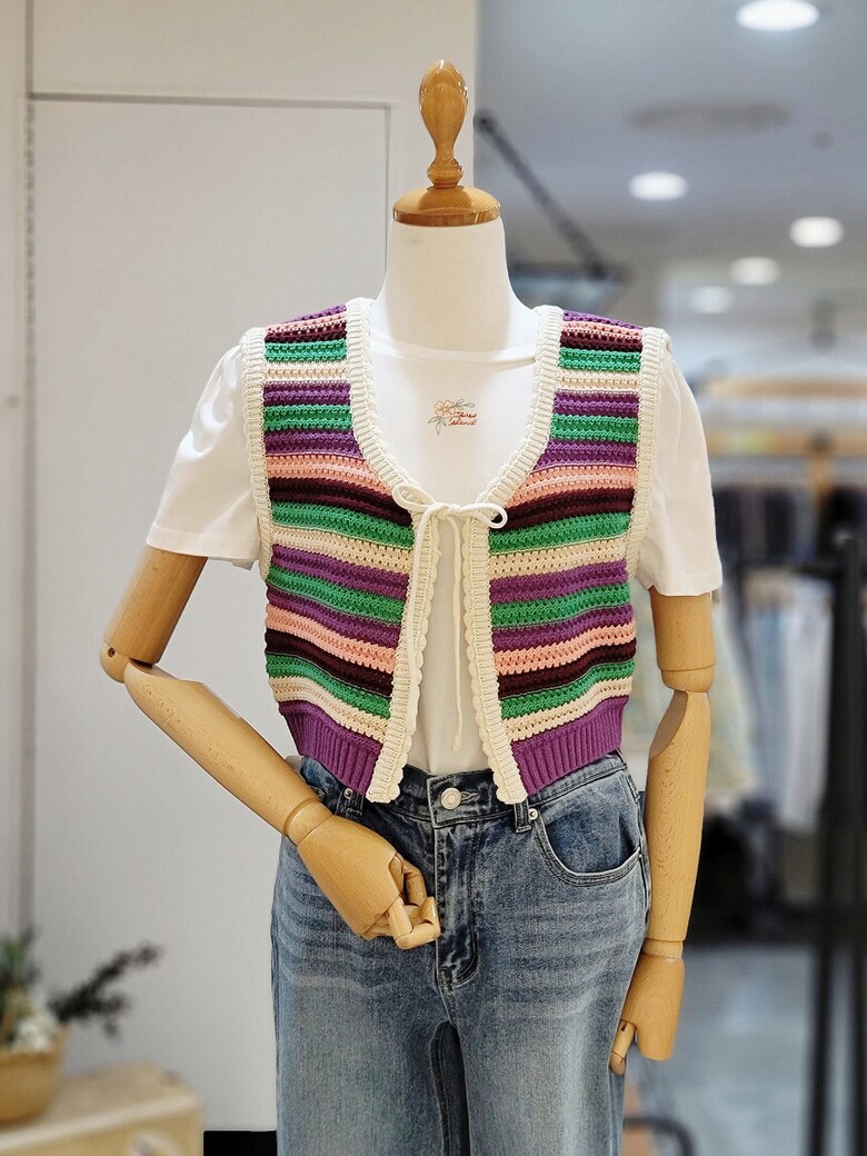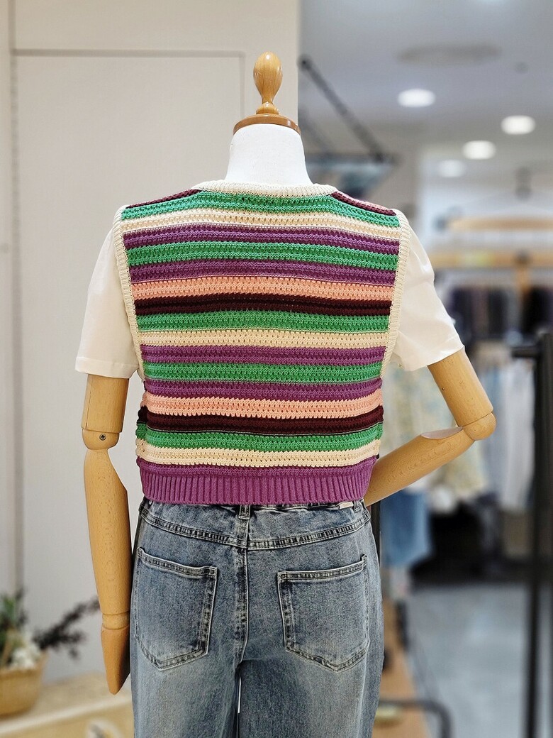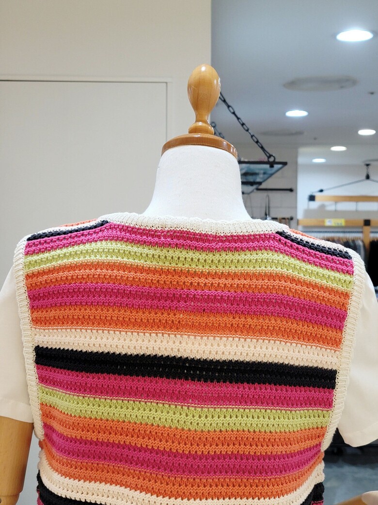 유니크한 칼라감이 포인트인 니트 베스트입니다.