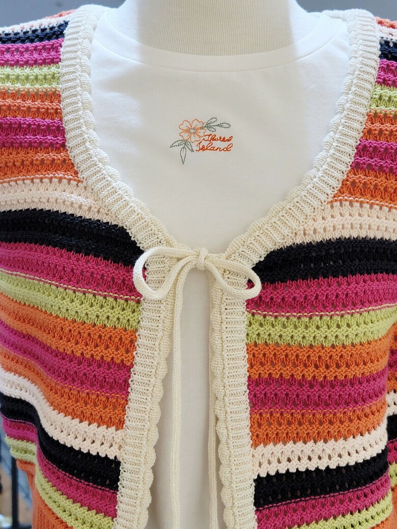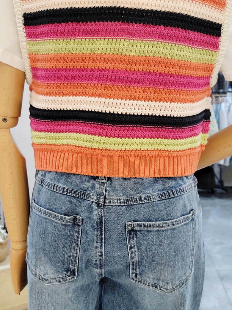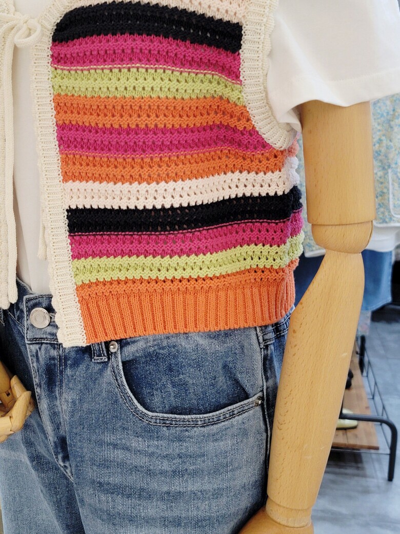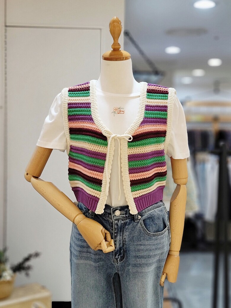 유니크한 칼라감이 포인트인 니트 베스트입니다.