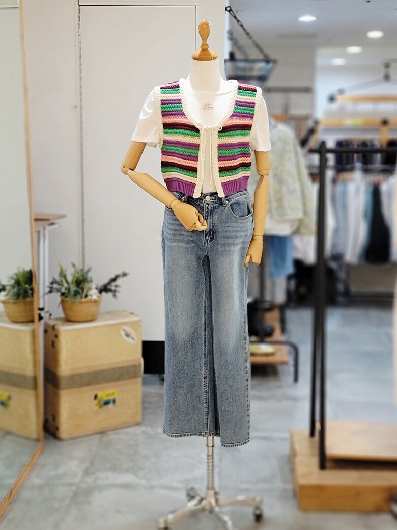 칼라 블로킹 펑키 베스트 T244MVT233W