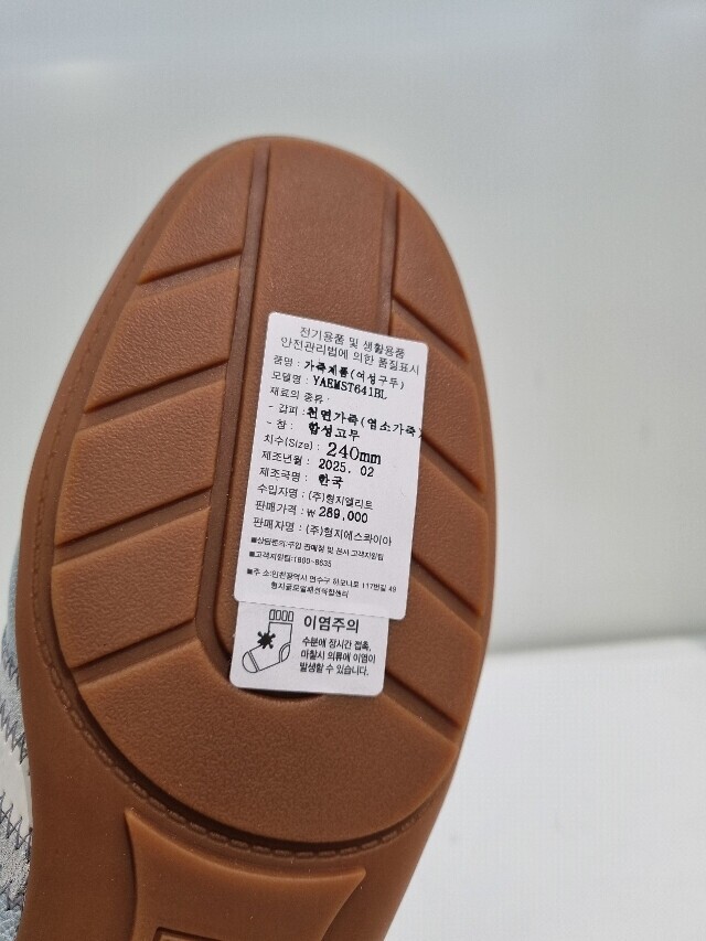 | 1. 제품 소재 (운동화인 경우에는 겉감, 안감을 구분하여 표시) | 염소가죽 |