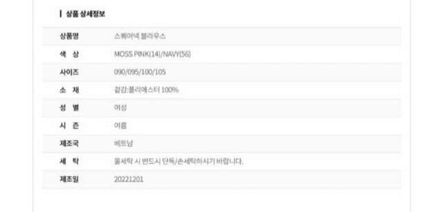 | 1. 제품 소재 (섬유의 조성 또는 혼용률을 백분율로 표시, 기능성인 경우 성적서 또는 허가서) | 상품상세참조 |